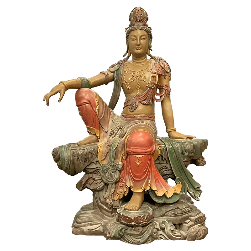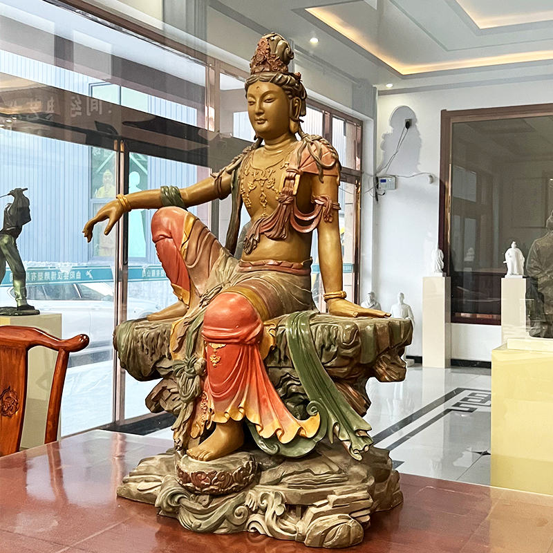 玻璃钢水月观音菩萨佛像雕塑定制大型坐石观音像寺庙供奉铜雕雕像