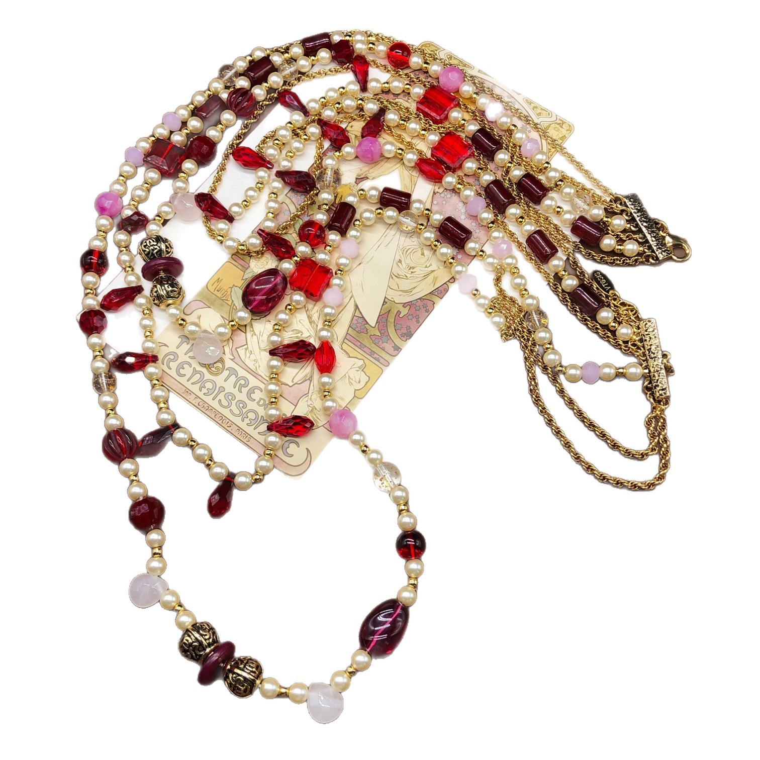 宫廷风红色椭圆设计感水晶吊坠项链法式复古气质轻奢珍珠锁链配饰