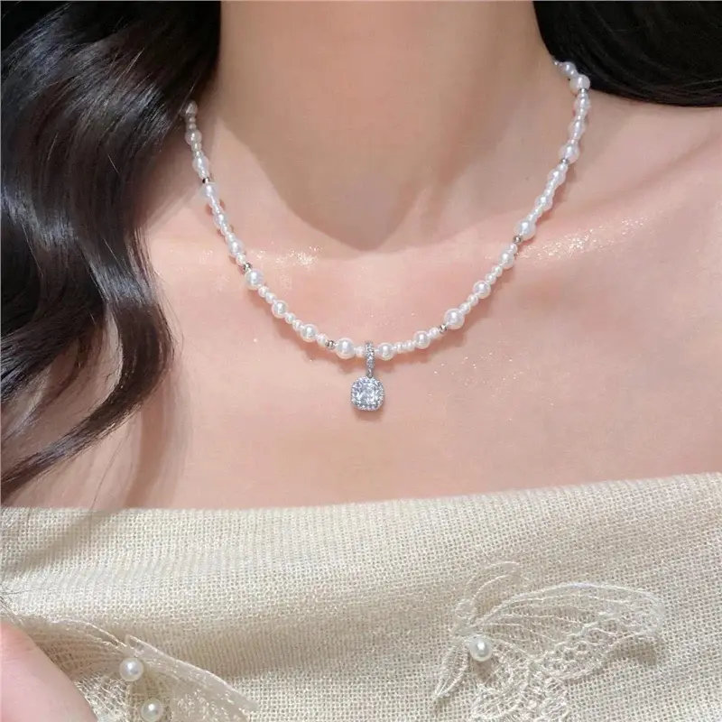 铜合金曼塔玫瑰色项链小众少女感百搭方糖吊坠精致小香风锁骨链