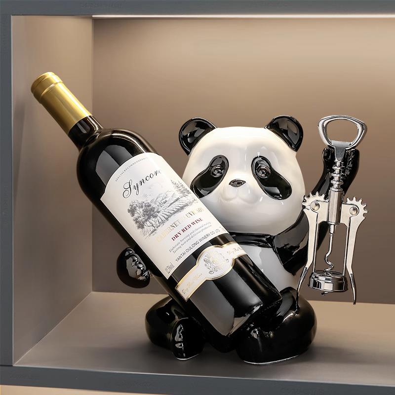 海贝海轻奢高档熊猫红酒架酒柜摆件创意家居客厅电视餐边柜装饰品
