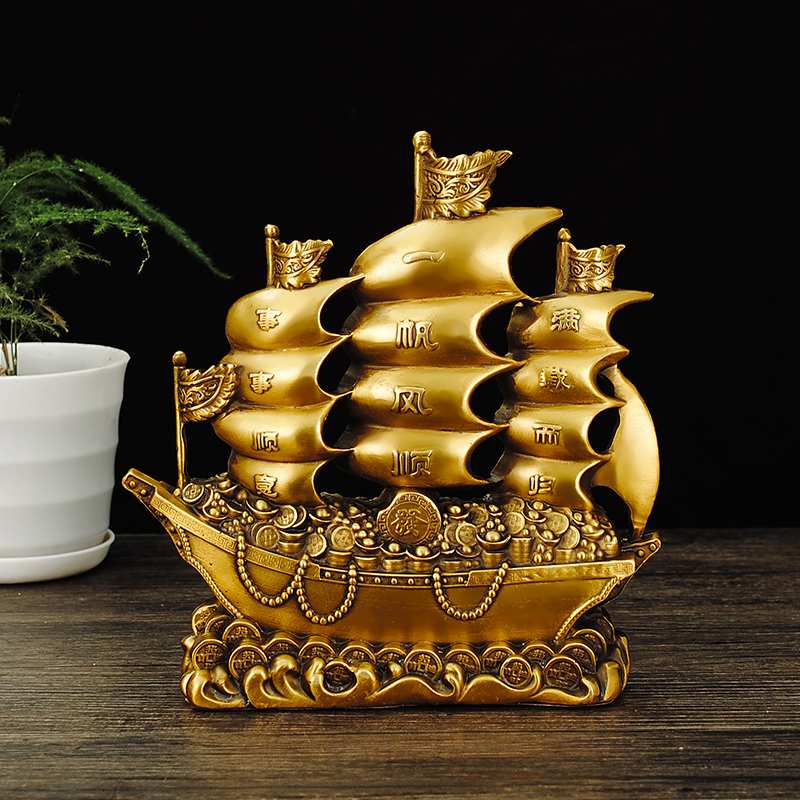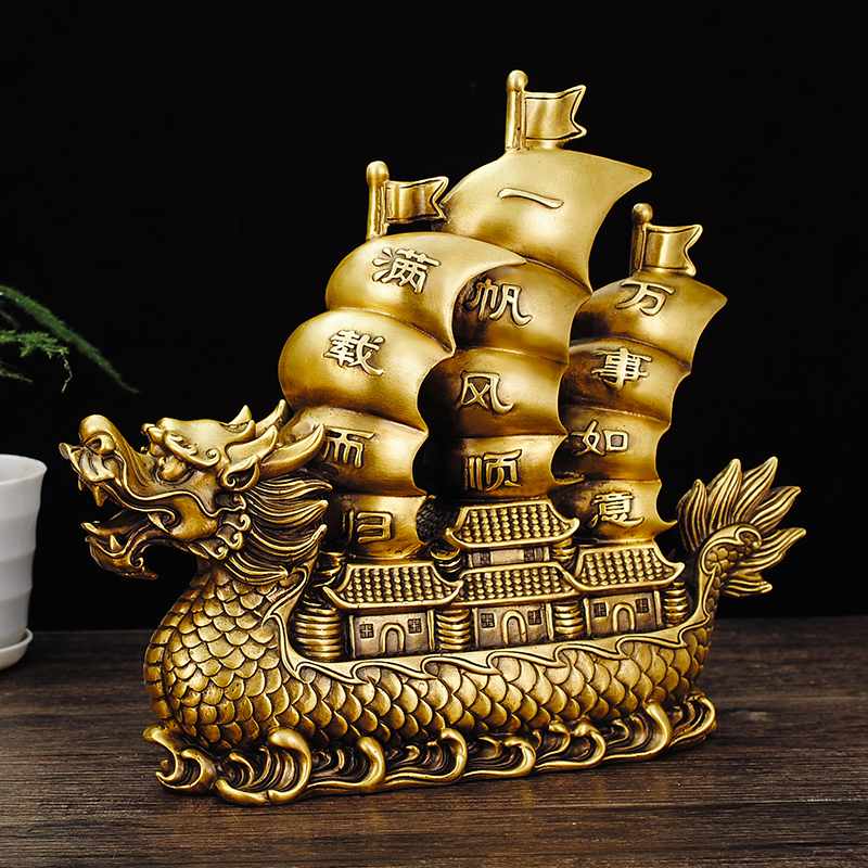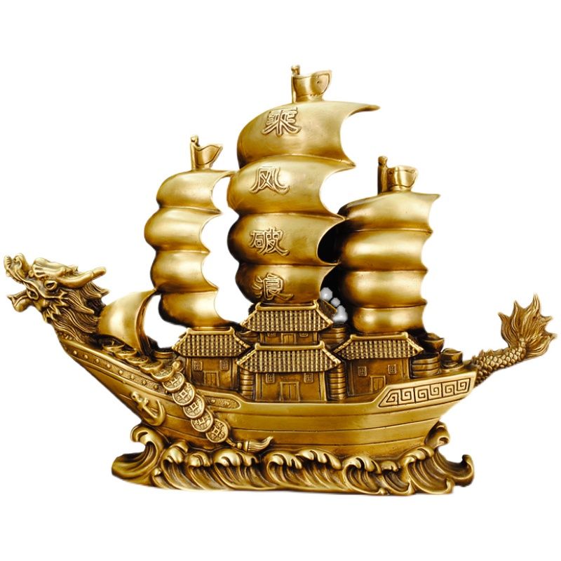 纯铜一帆风顺帆船摆件乘风破浪龙船玄关办公室门店装饰满载而归船