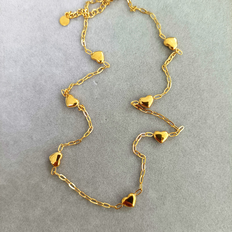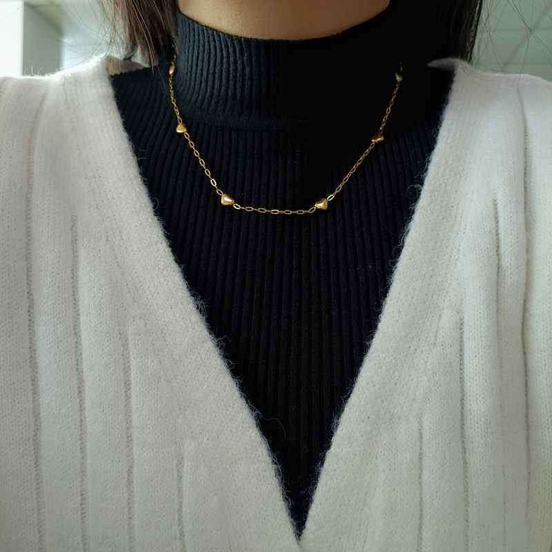 甜美可爱桃心复古七颗爱心项链锁骨链百搭女生钛钢镀金不掉色颈链