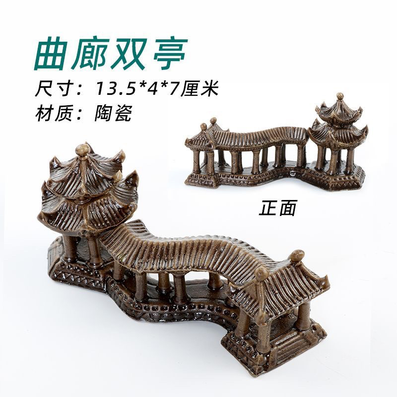 陶瓷凉亭六角亭塔兰古建筑物上水石假山盆景微景观鱼缸装饰摆件