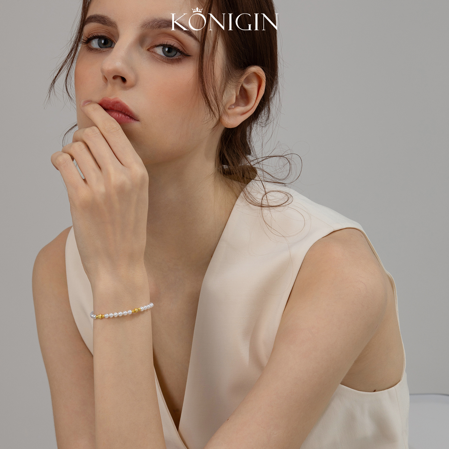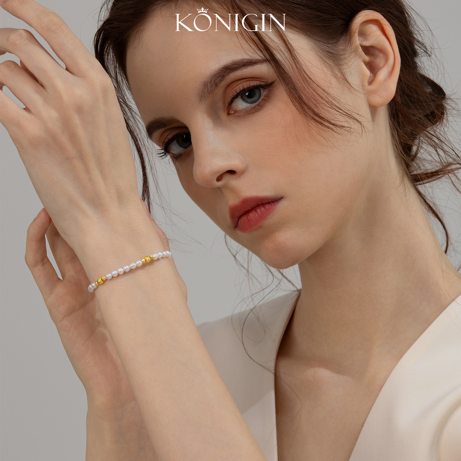 Konigin淡水珍珠手链女轻奢小众925纯银近圆串珠夏天简约金色手饰
