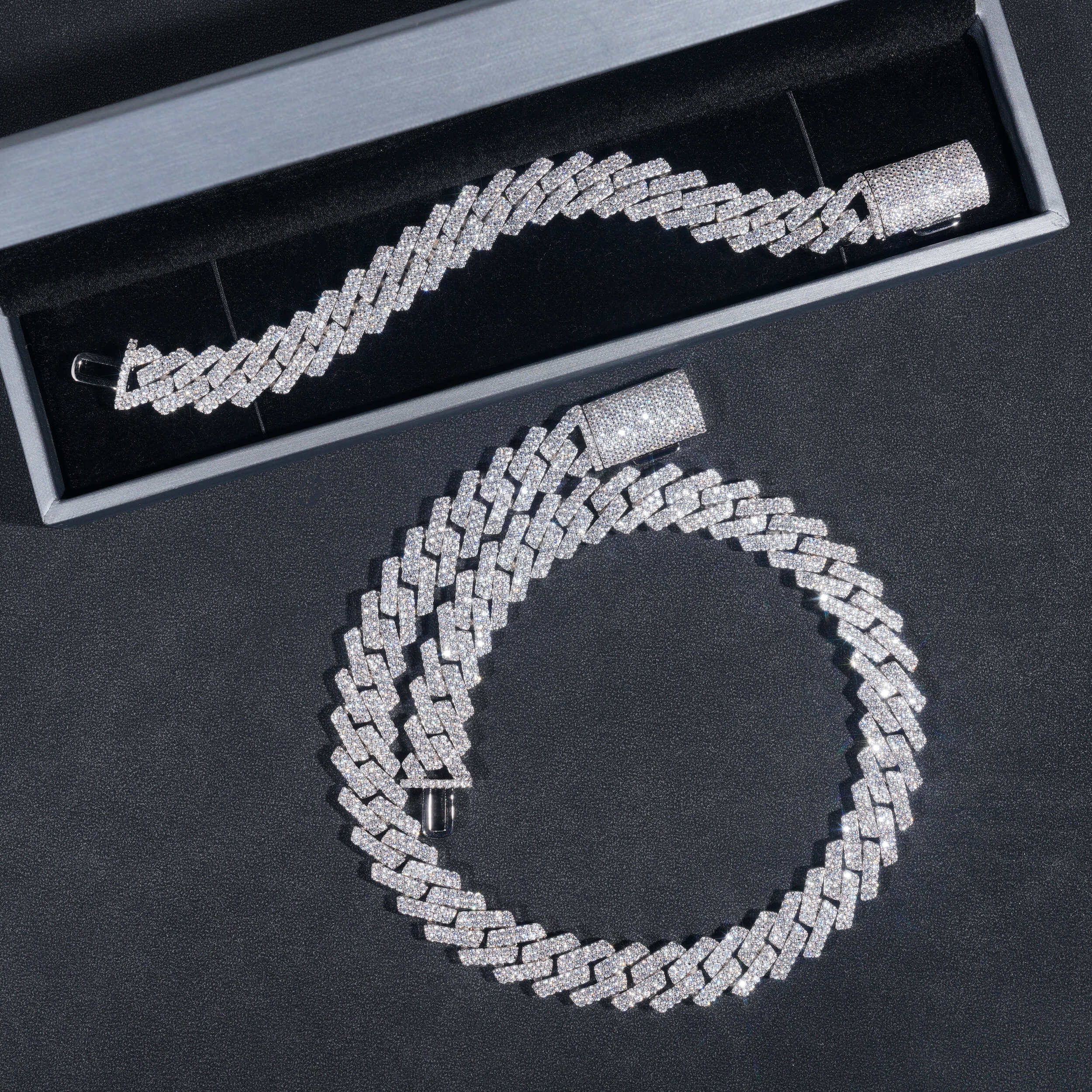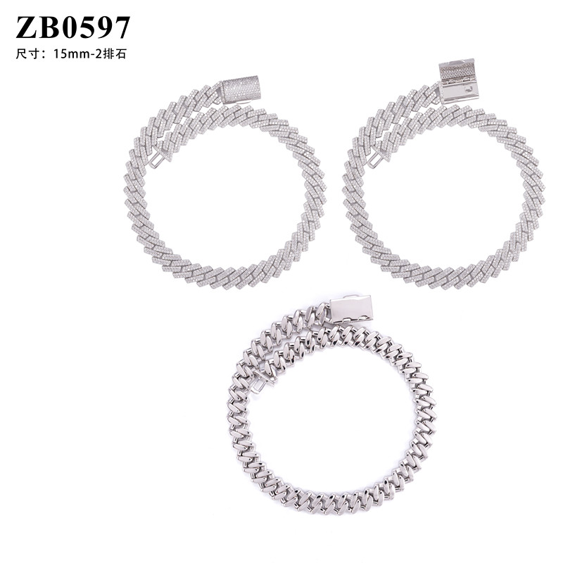 INS欧美嘻哈个性风男生项链铜镶5A锆石满钻15mm 古巴链手链项链