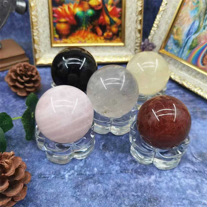 天然水晶球粉色球白色球黄色黑翟石草莓晶球装饰摆件居家原石工艺