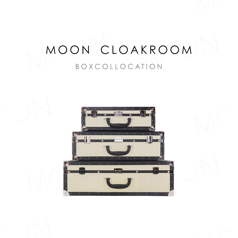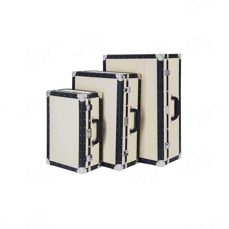 MOON慕空间收纳箱米色皮黑边手提旅行箱行李箱样板房衣帽间