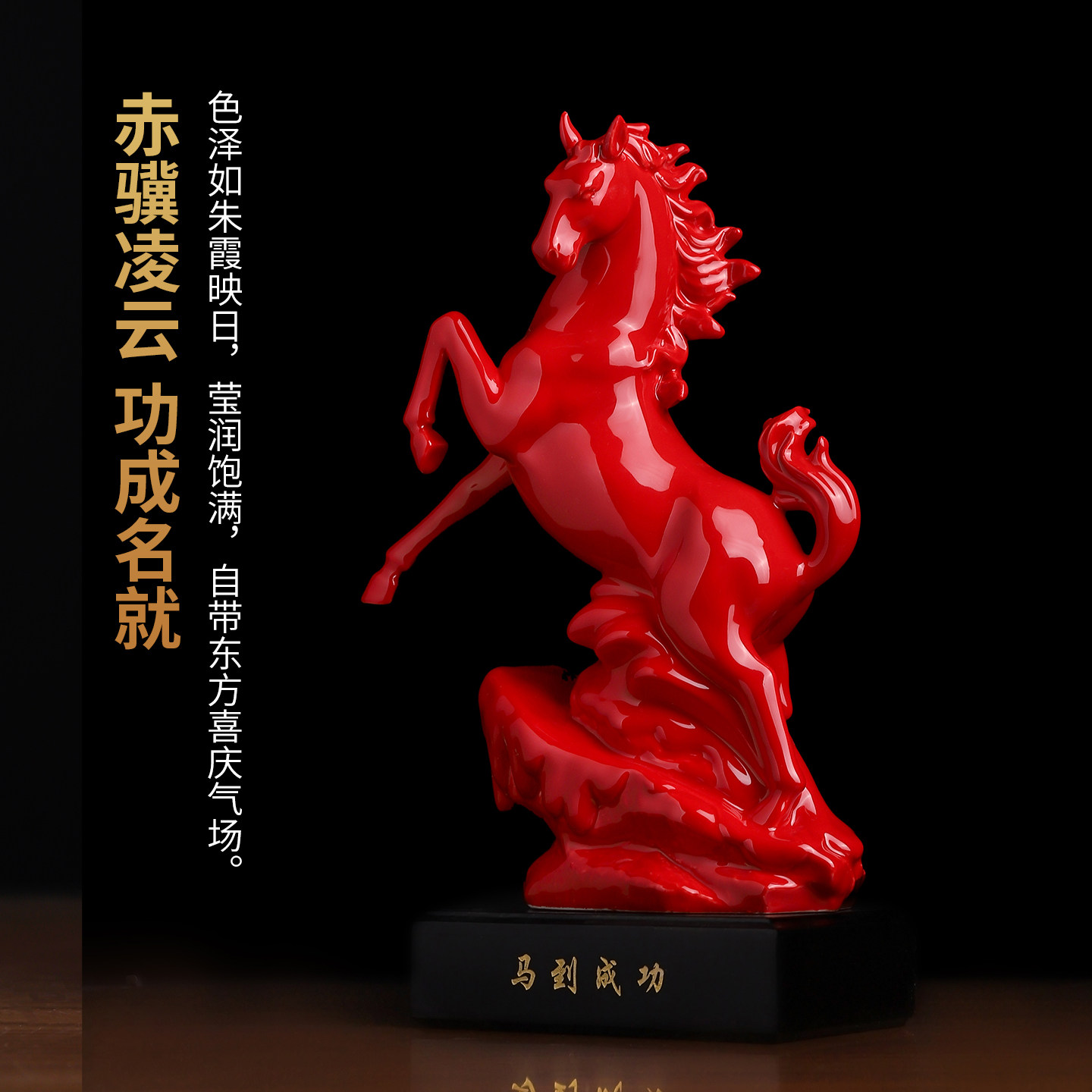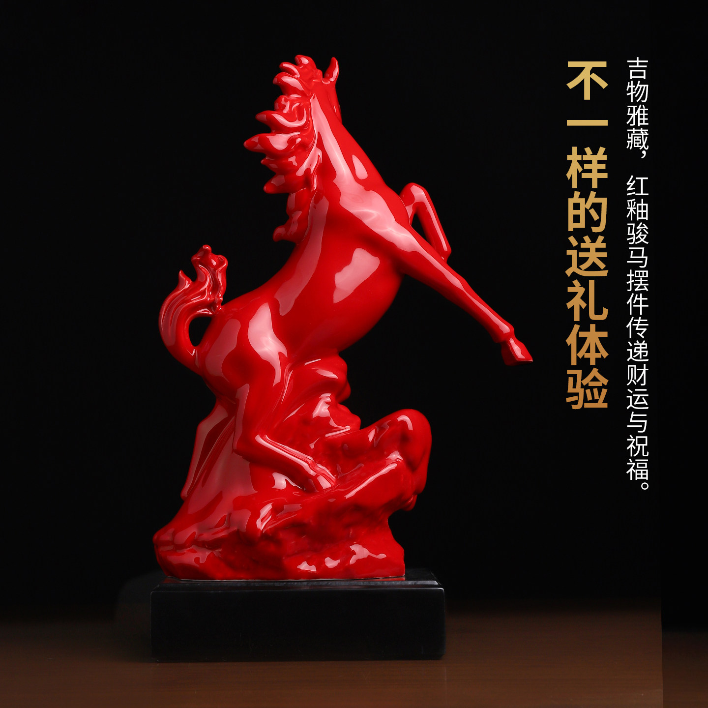 东方泥土陶瓷马到成功马年新年生肖马摆件红色高档装饰品礼品礼物