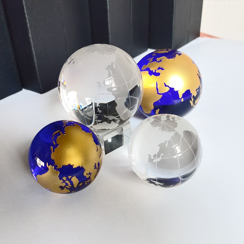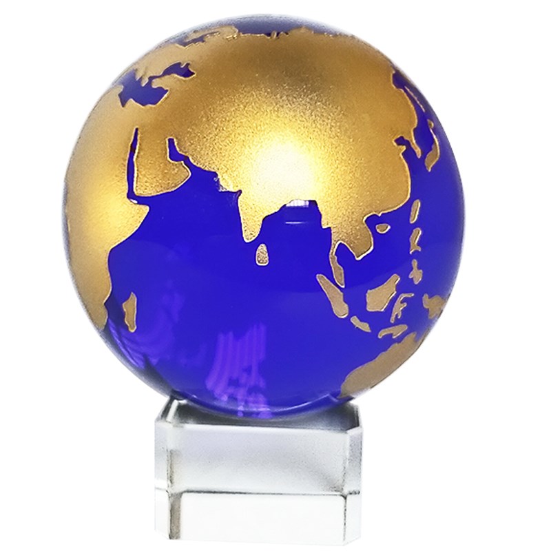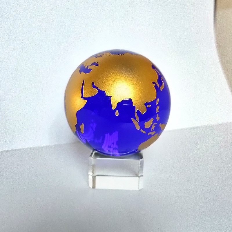 蓝色水晶地c球仪摆件柜台书桌装饰家居摄影道具创意玩具礼品有底