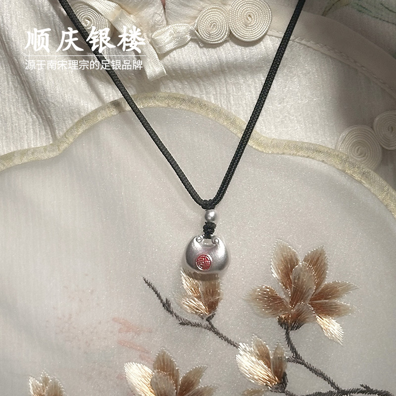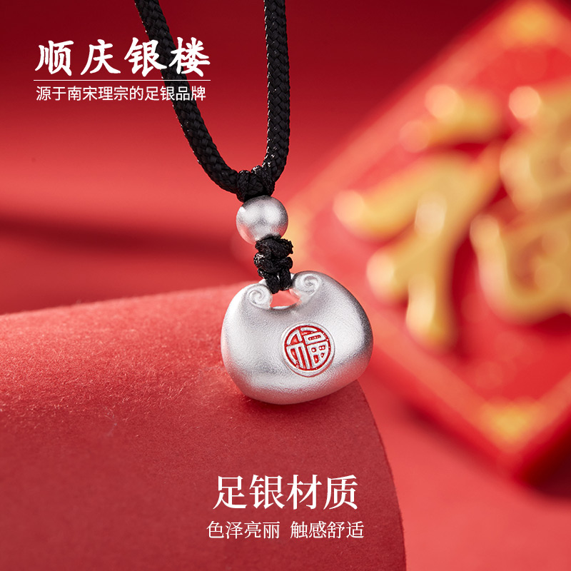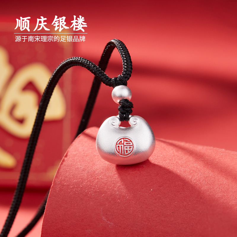 顺庆银楼S9999纯银项链鸿福吊坠项链足银编绳项链简约送女友礼物