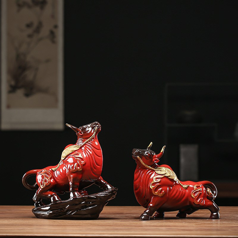 牛摆件招财办公室j老板桌商务高档倒流香灯圈装饰软装乔迁开业礼
