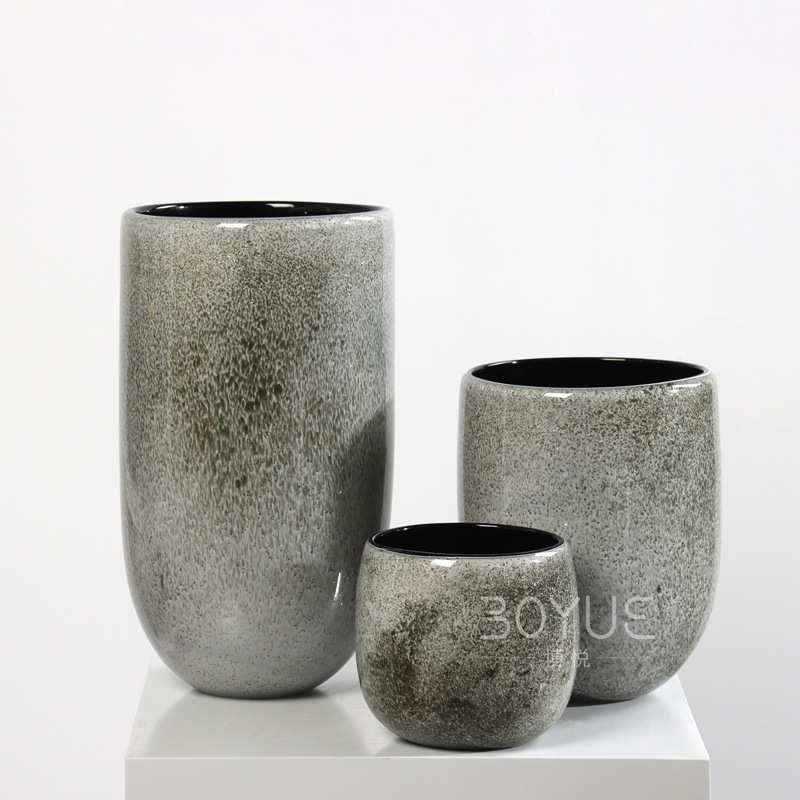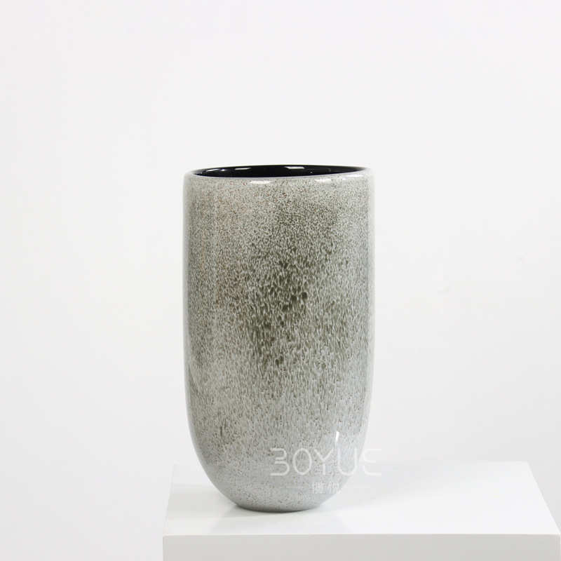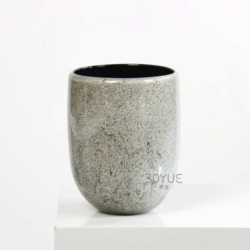 现代简约青石纹大口径手工琉璃花瓶设计师样板间售楼处客厅软装饰