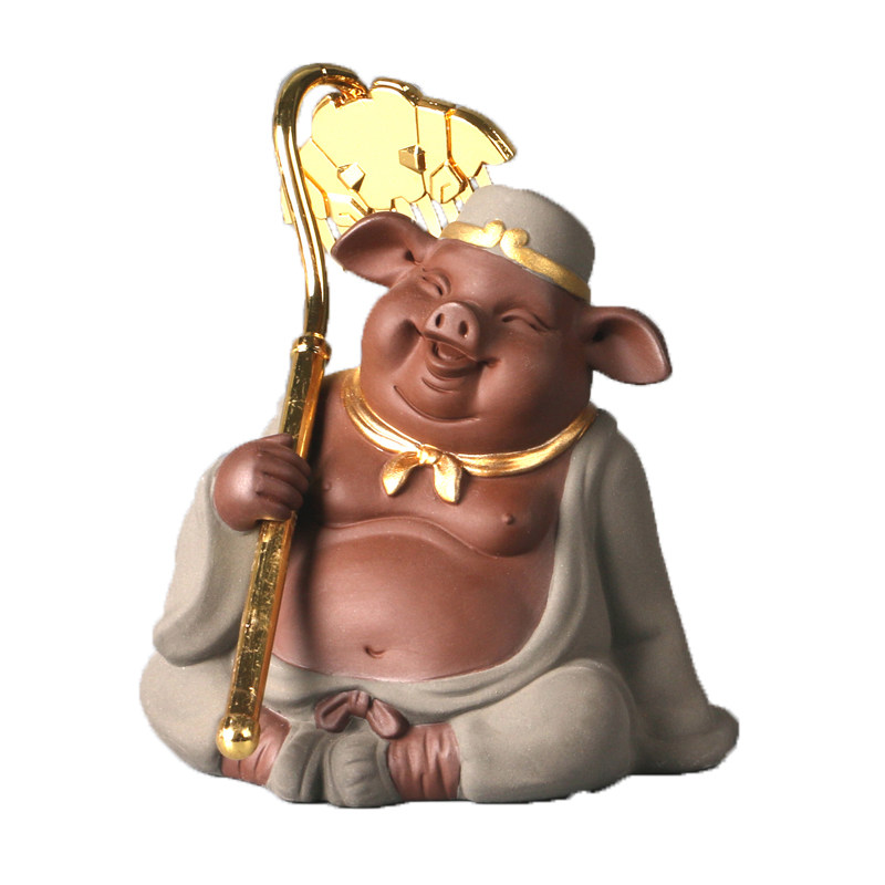 百造山天蓬元帅猪八戒精品摆件紫砂可养办公桌面书房家居鱼缸摆件