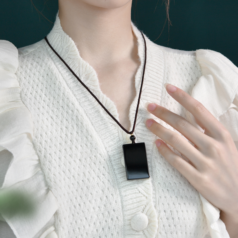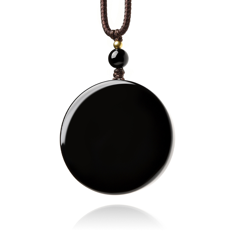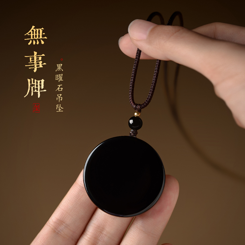 天然黑曜石平安无事牌吊坠男女圆牌方牌无字牌项链挂件本命年饰品