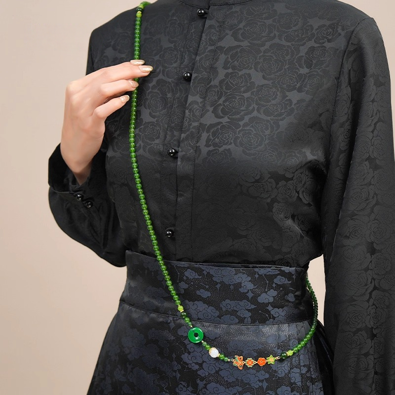 高级感长款玉石国风斜挎链串珠马来玉绿项链女配饰多圈锁骨链手串