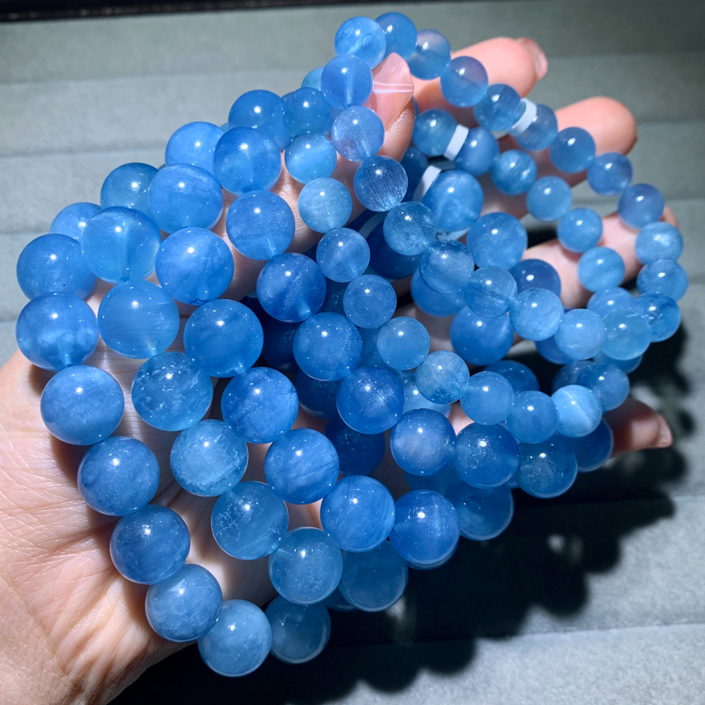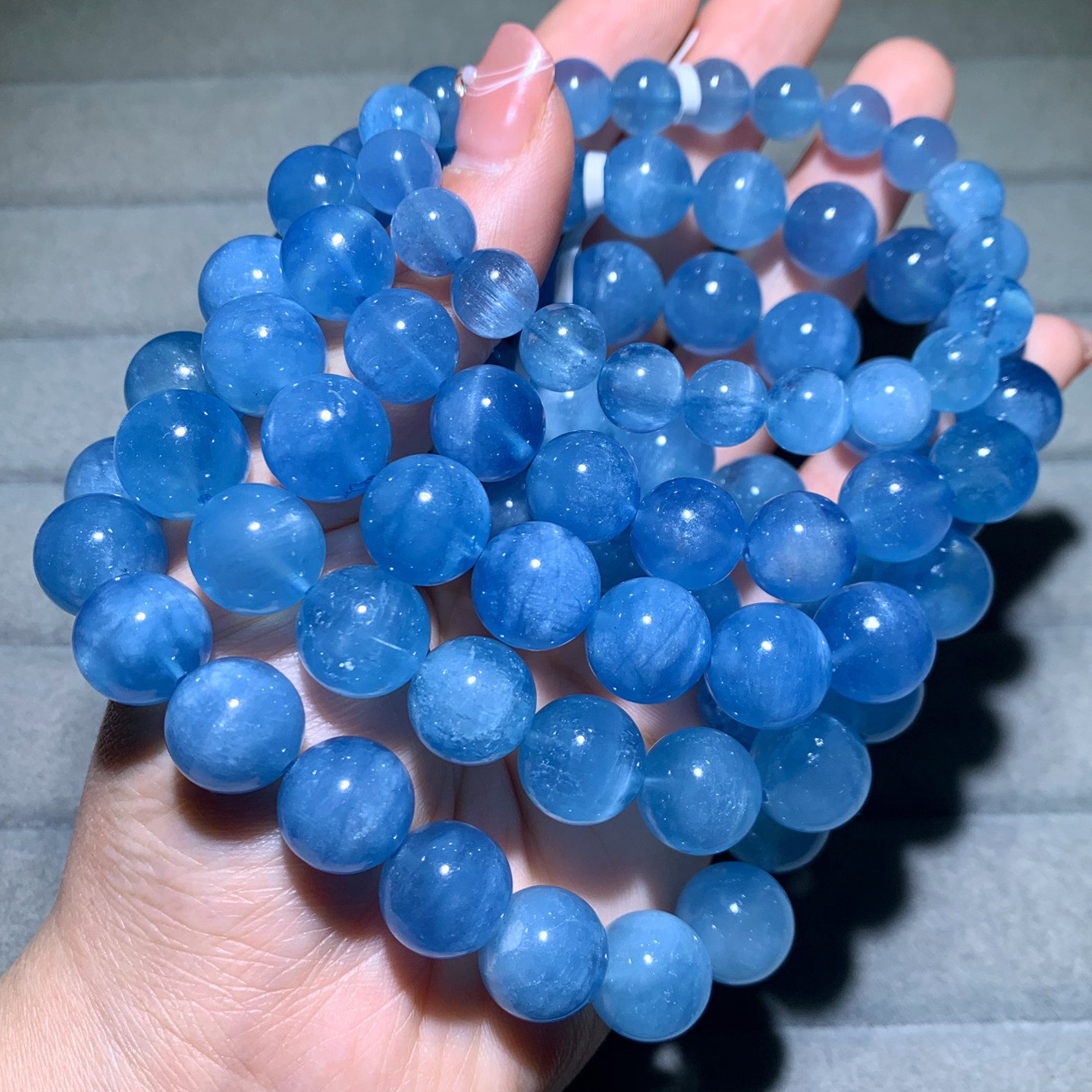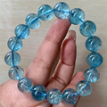 天然猫眼海蓝宝手链巴西绿柱石蓝水晶手串甜美饰品送礼物情侣款女