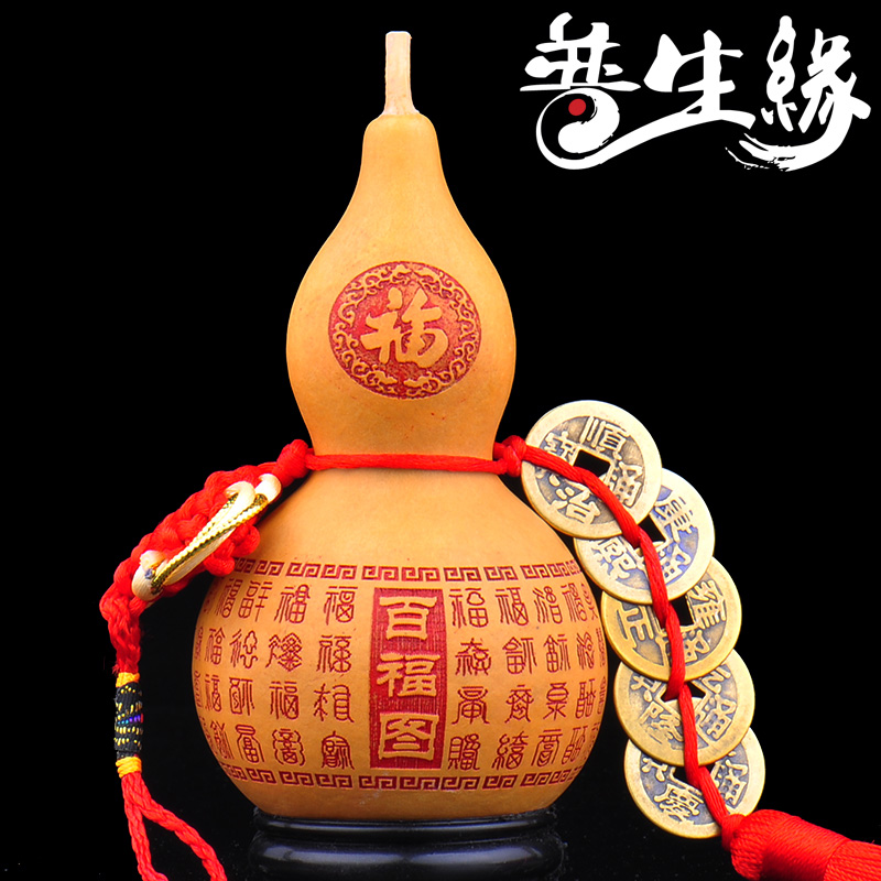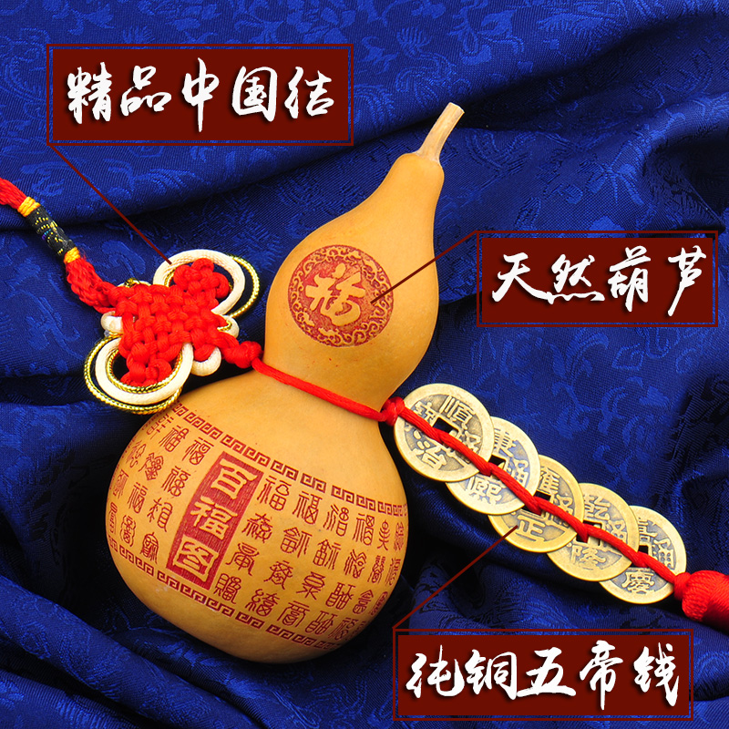 天然葫芦摆件纯铜五帝钱挂件大号客厅卧室装饰带龙头大葫芦