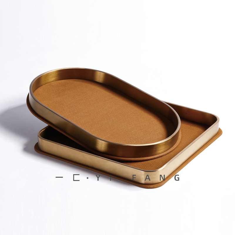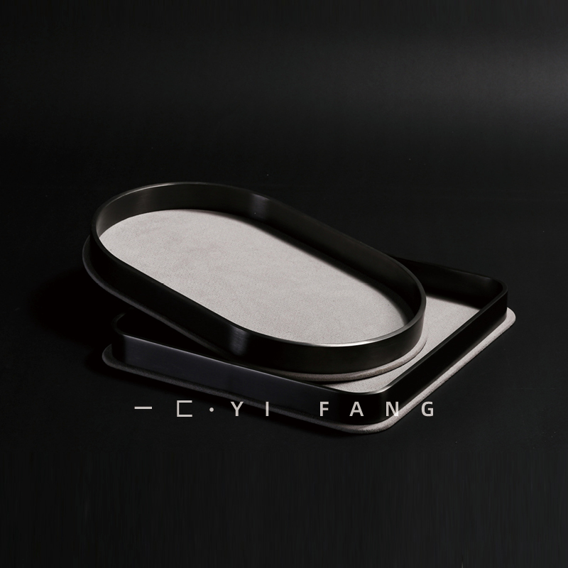 一匚 样板间售楼处现代轻奢客餐厅厅茶几桌面收纳皮质托盘软装摆