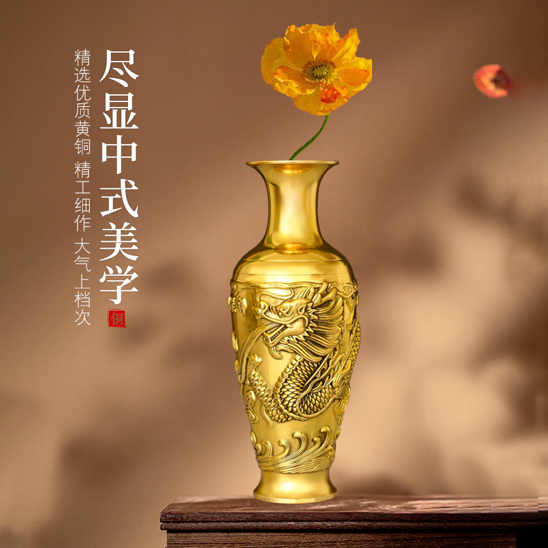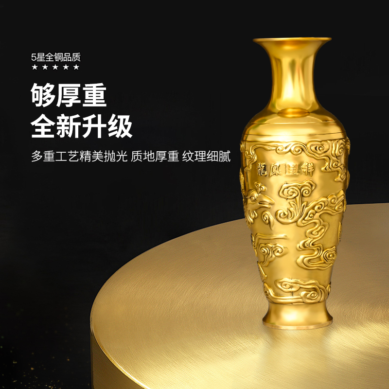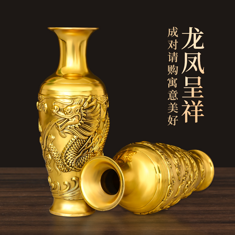 铜花瓶龙凤花瓶摆件龙凤呈祥一对插花家居店铺酒柜办公室装饰送礼