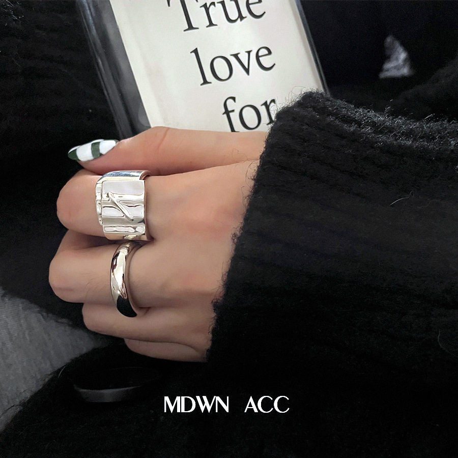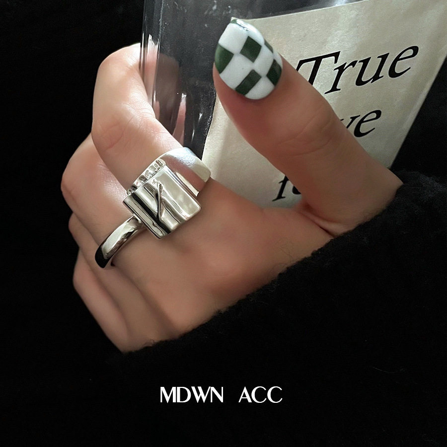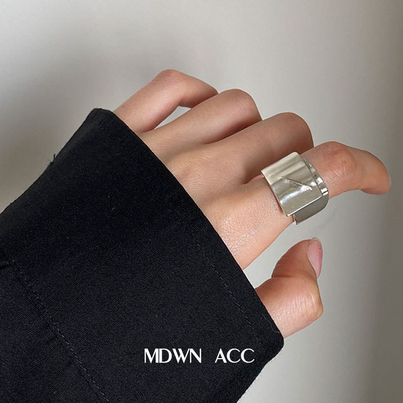 个性宽边戒指女轻奢高级感复古时尚重工几何波浪开口戒指可调节