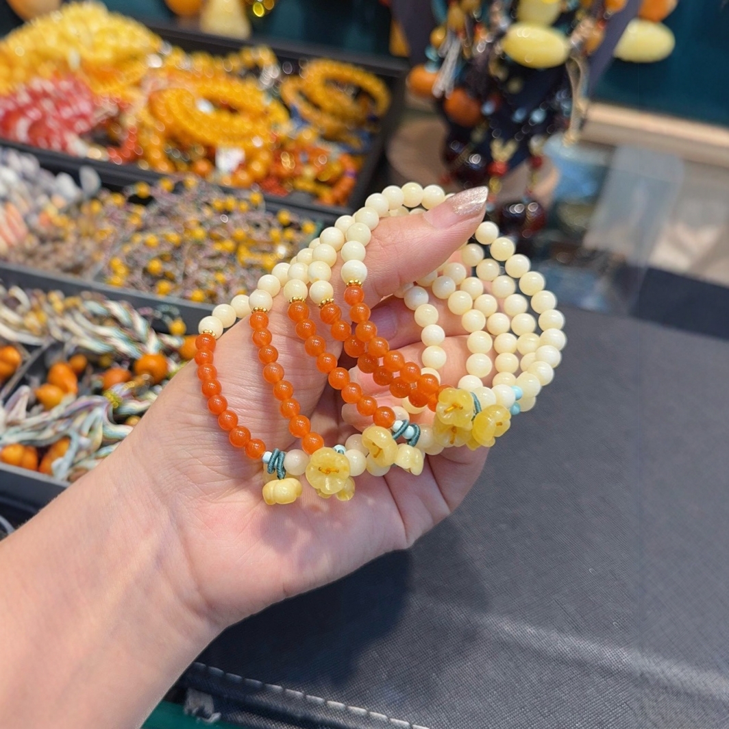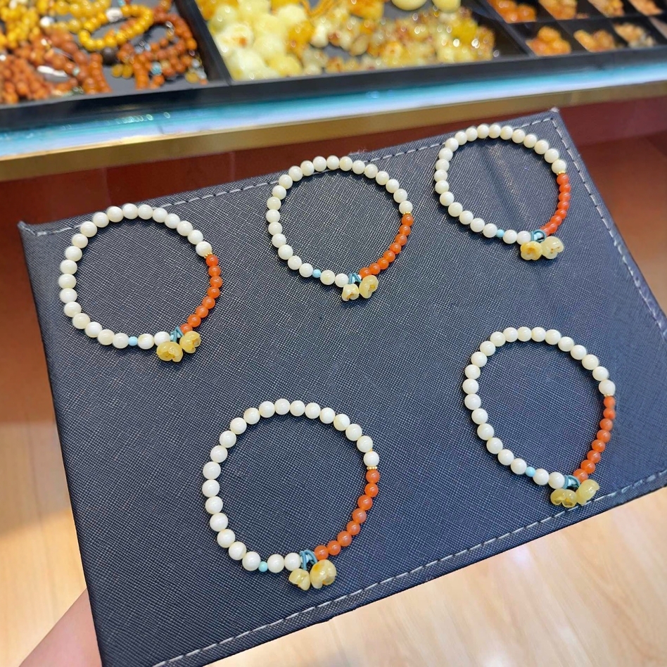 柏利来原创天然俄料白蜜蜡单圈手串满蜜白花蜜小花女手链可配证书