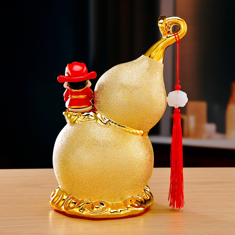 沙金陶瓷葫芦摆件招财家居客厅酒柜电视柜装饰品乔迁新房新年摆设