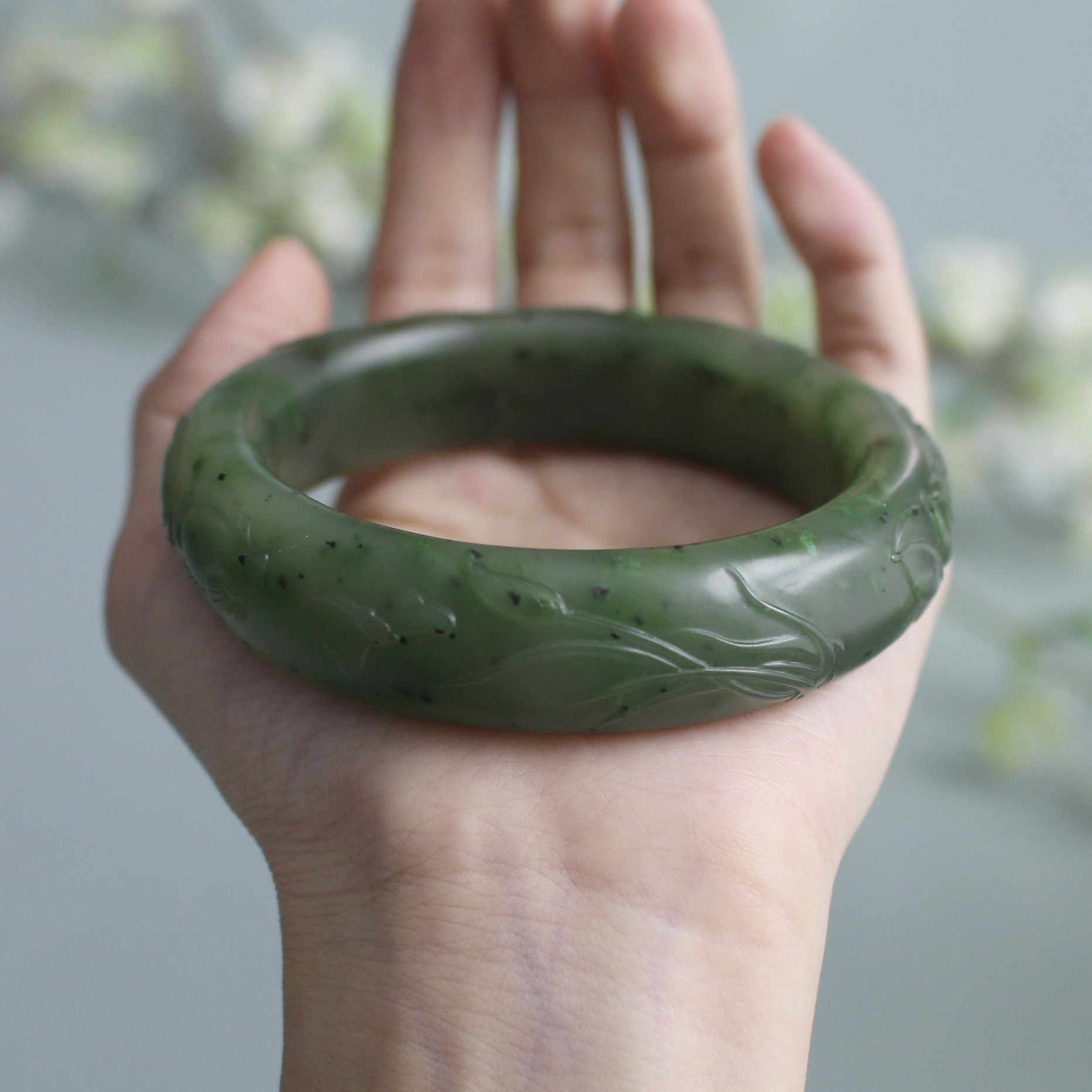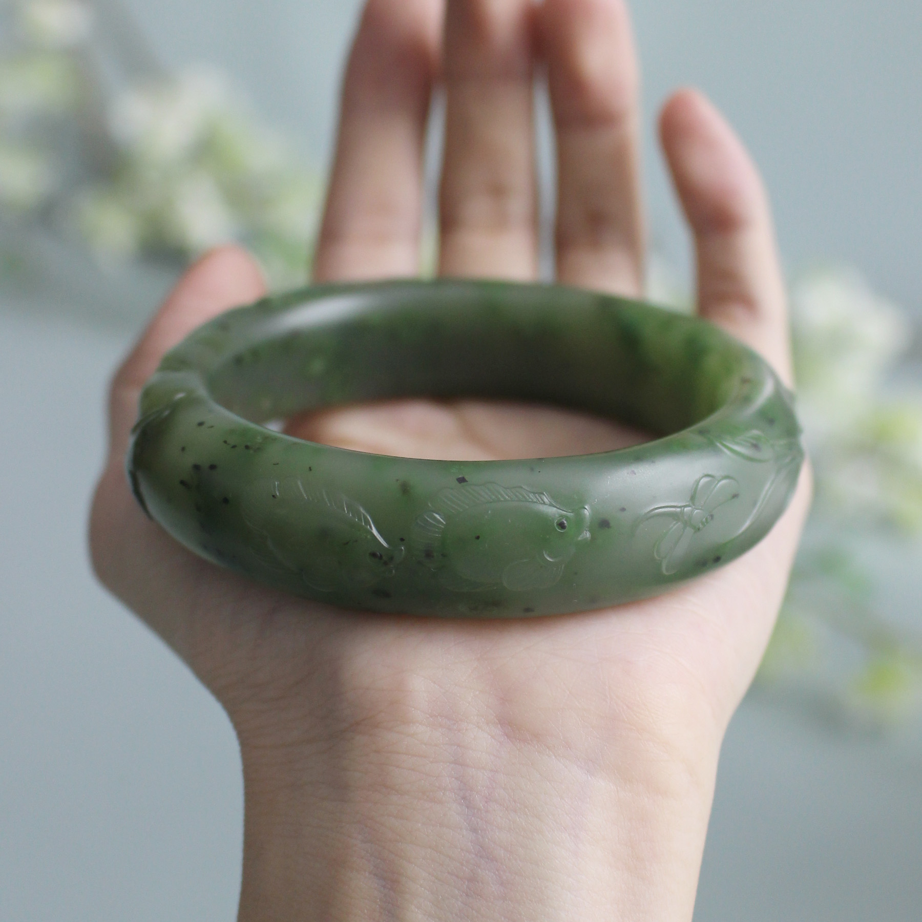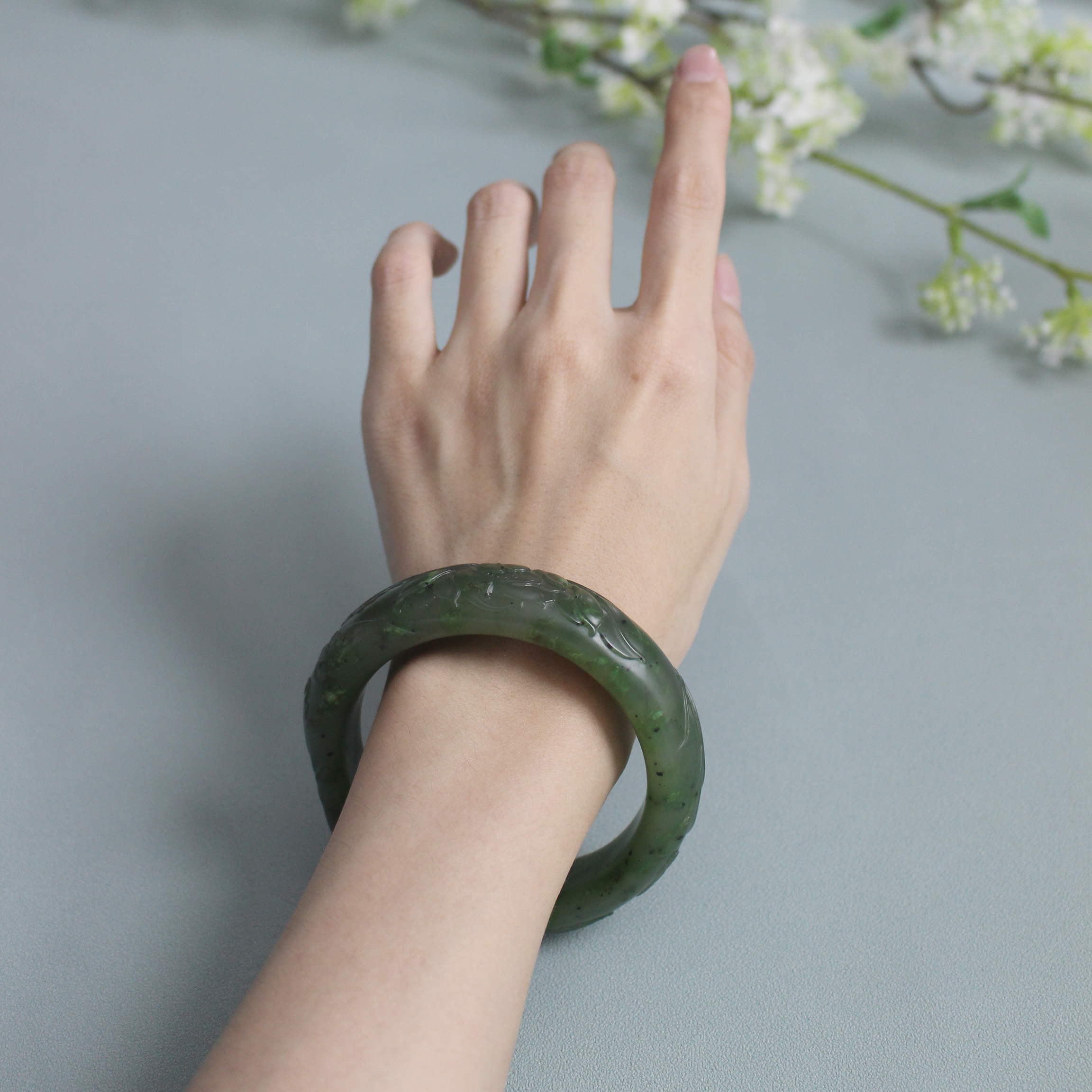 N59.2出自黄沁皮碧玉料子碧玉籽料雕花手镯 无原皮 朕®开仓