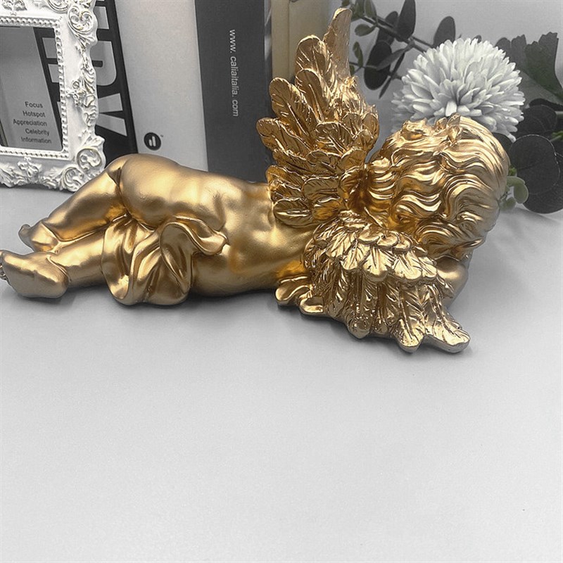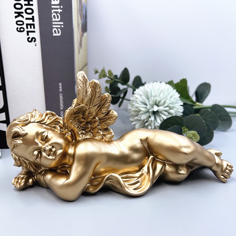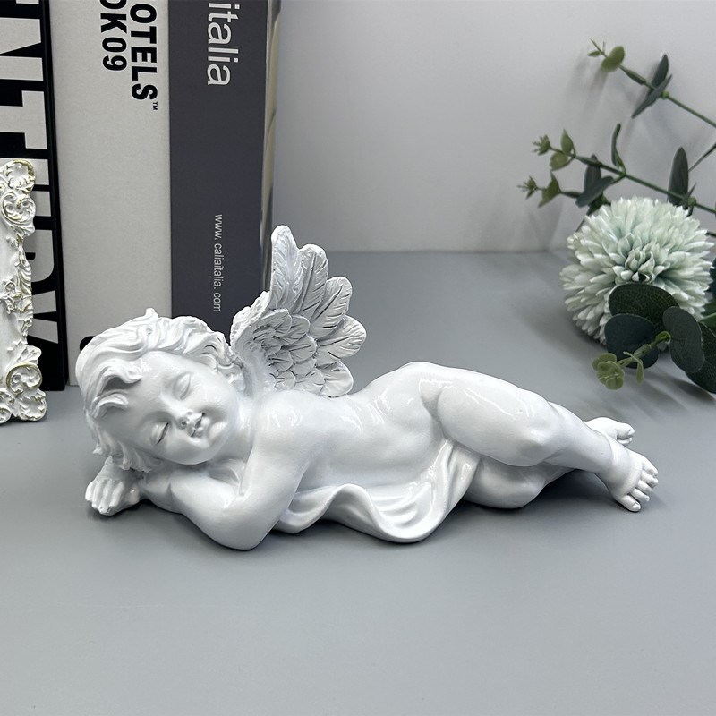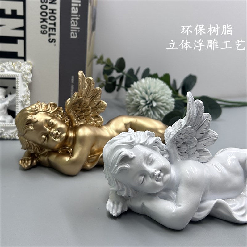 法式睡姿天使实心摆件欧式复古树脂雕塑客厅书房桌T面花园庭院装