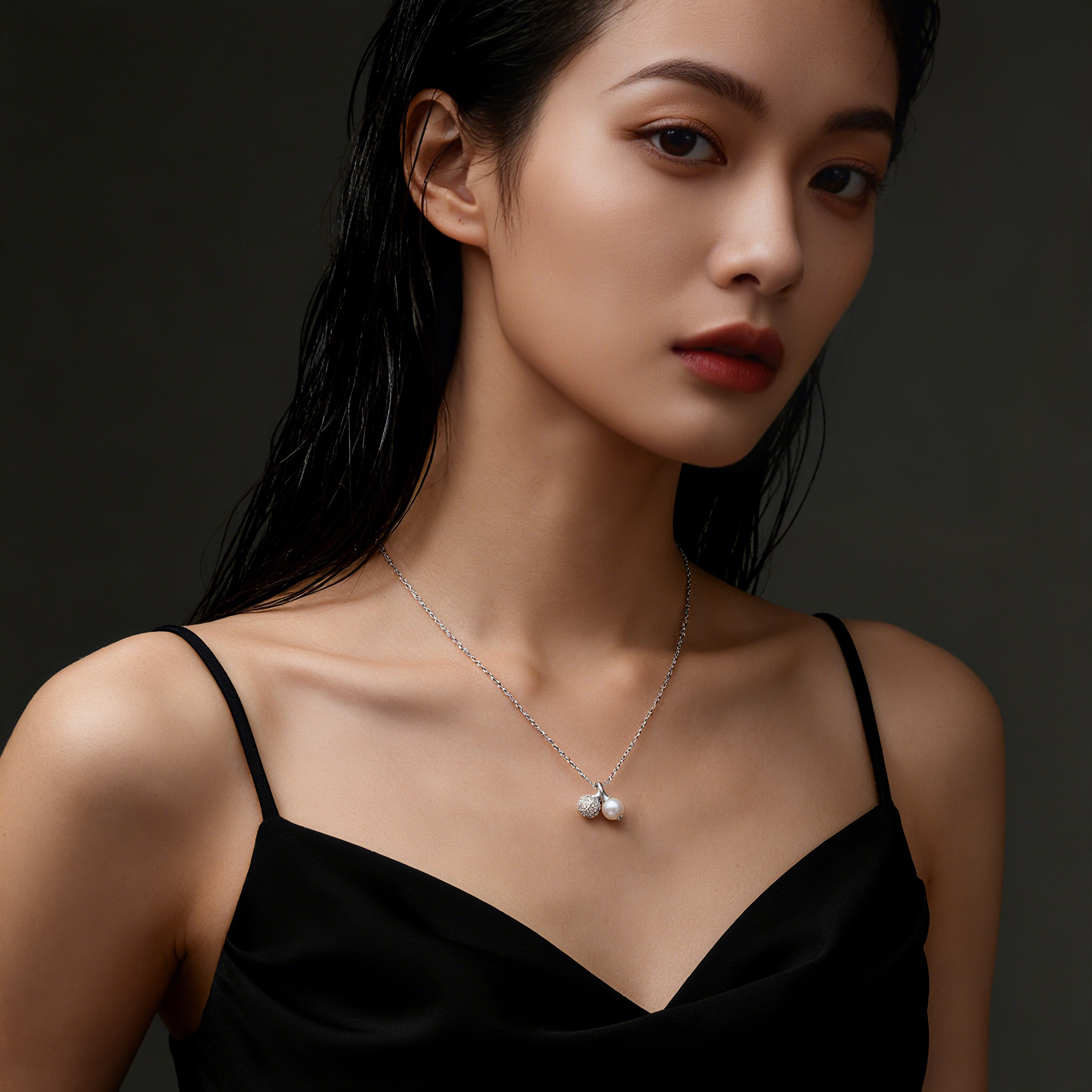 喜珠阁小樱桃珍珠吊坠女款轻奢高级生日礼物闪钻简约配饰