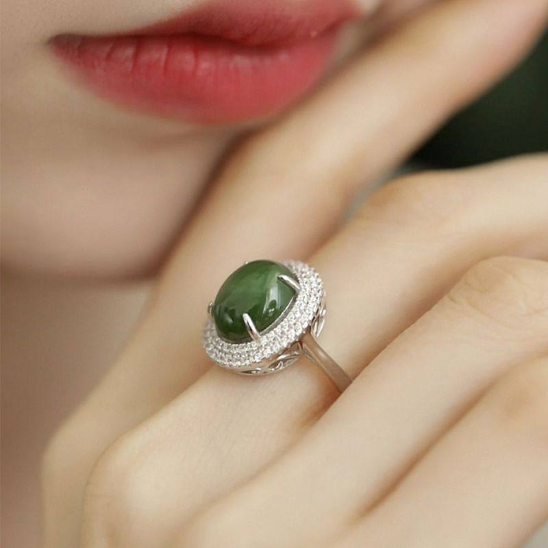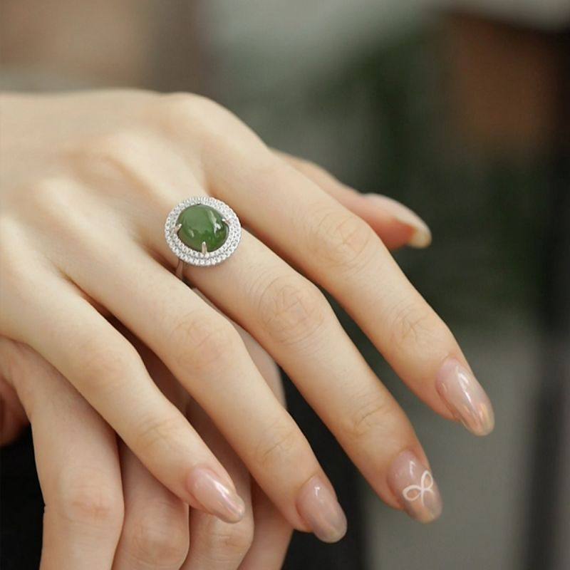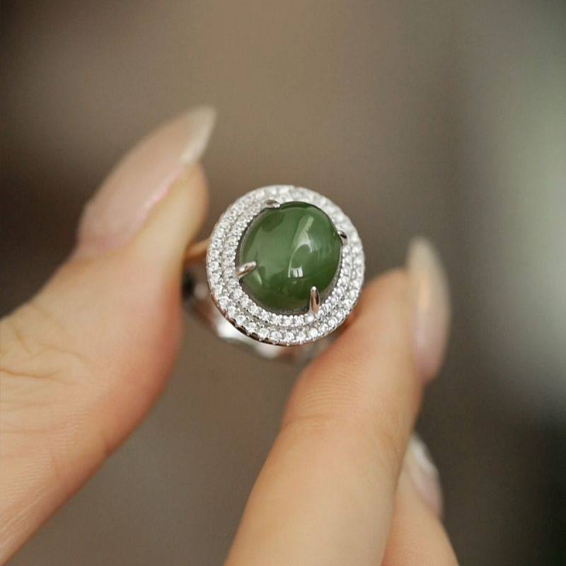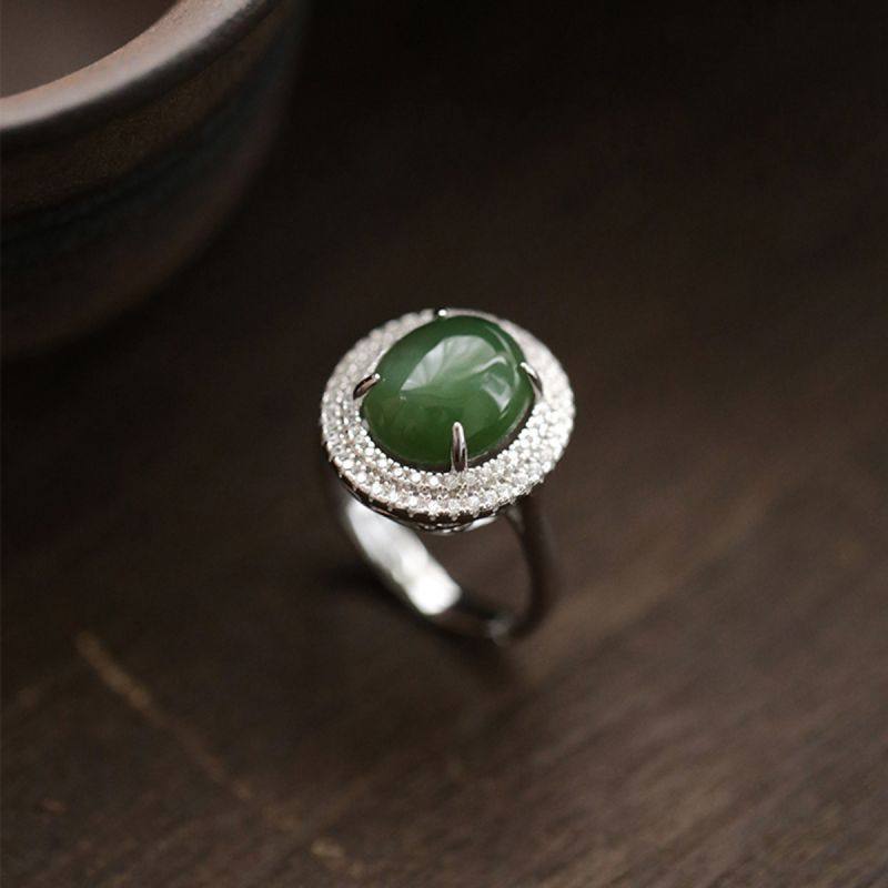 925银和田碧玉戒指女民族风高级感轻奢小众新中式国风开口戒简约