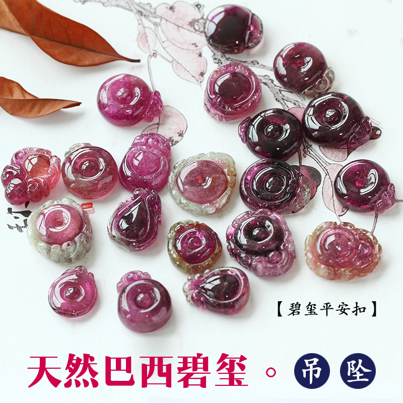 巴西天然碧玺吊坠红色西瓜小项坠平安扣福贝手工雕件宝宝坠 配饰