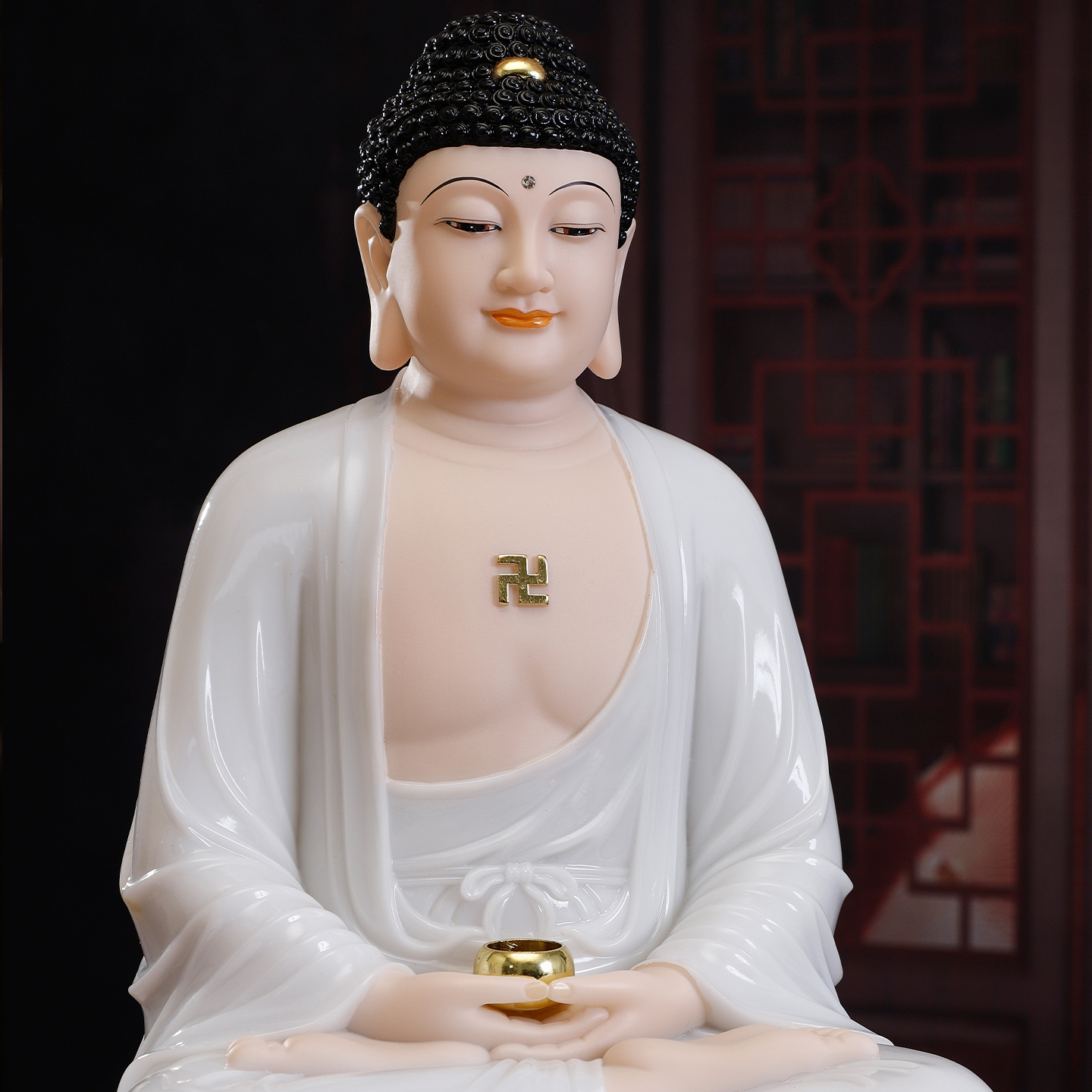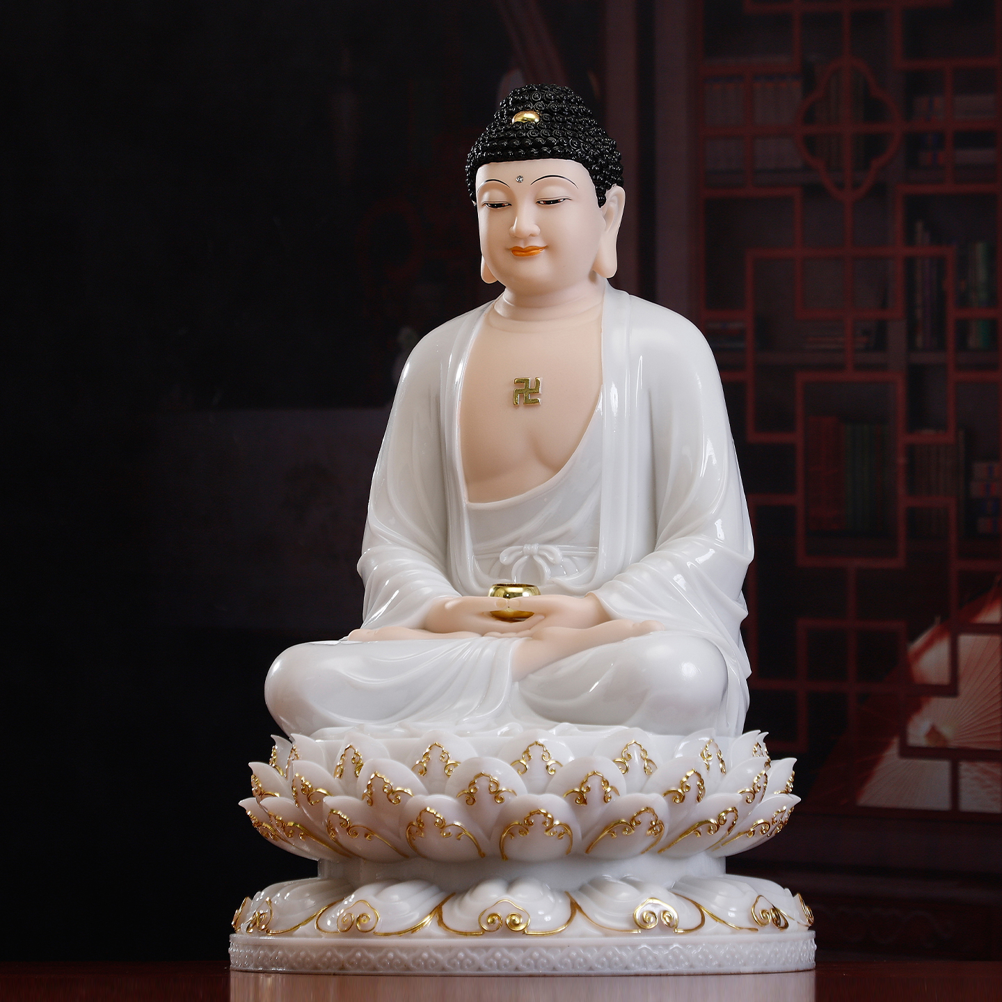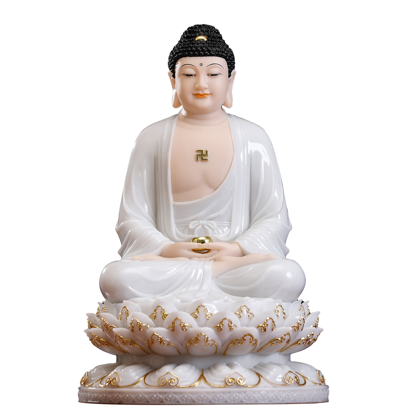 汉白玉释迦牟尼佛像摆件供奉三宝佛如来佛像阿弥陀佛像药师佛坐像