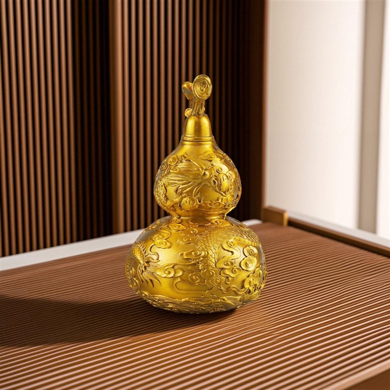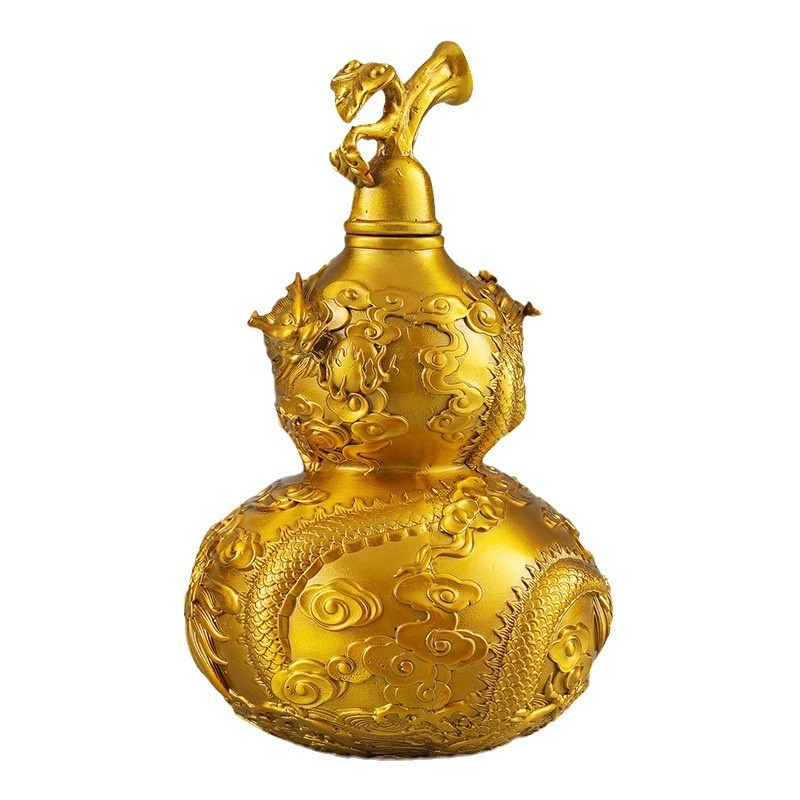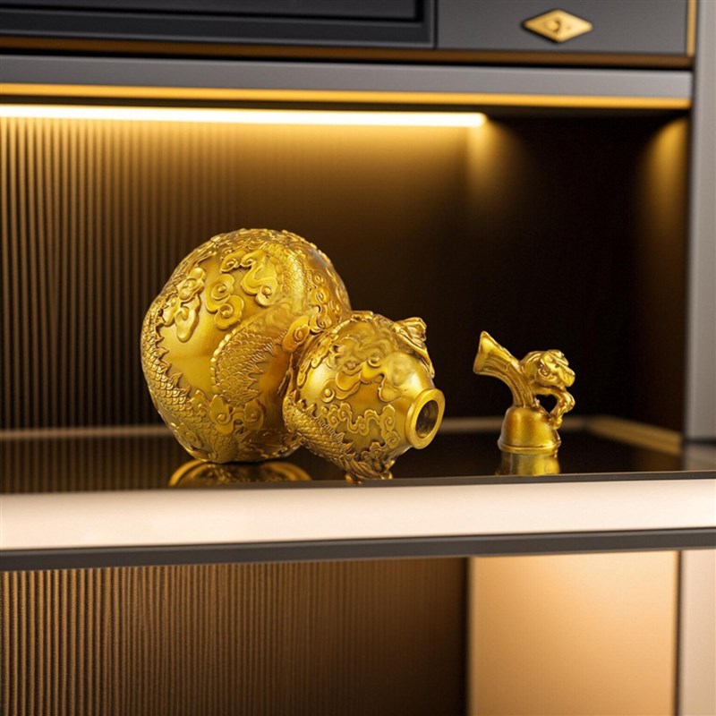 纯黄铜葫芦摆件龙戏珠开口葫芦客厅办公桌面玄关酒柜招财装饰品