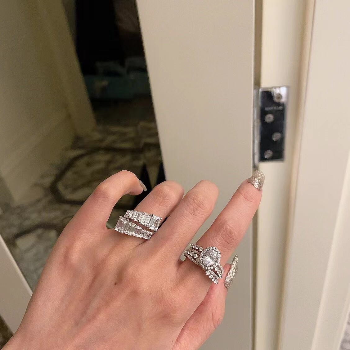 小众设计感重工蕾丝满钻鸽子蛋戒指开口可调节高级轻奢指环网红女