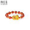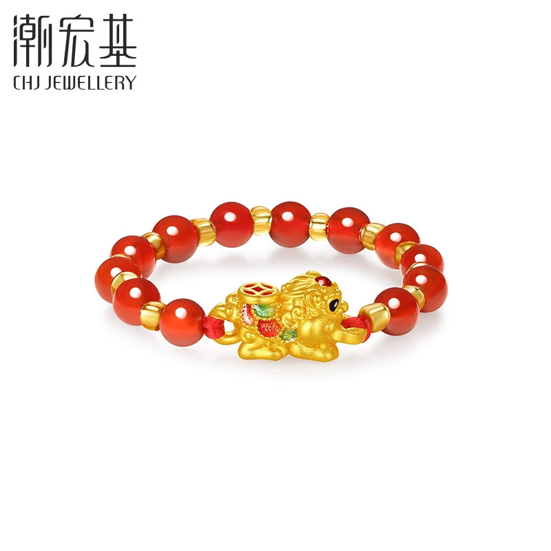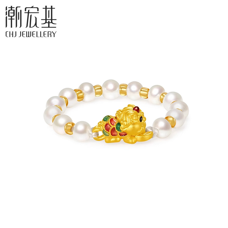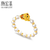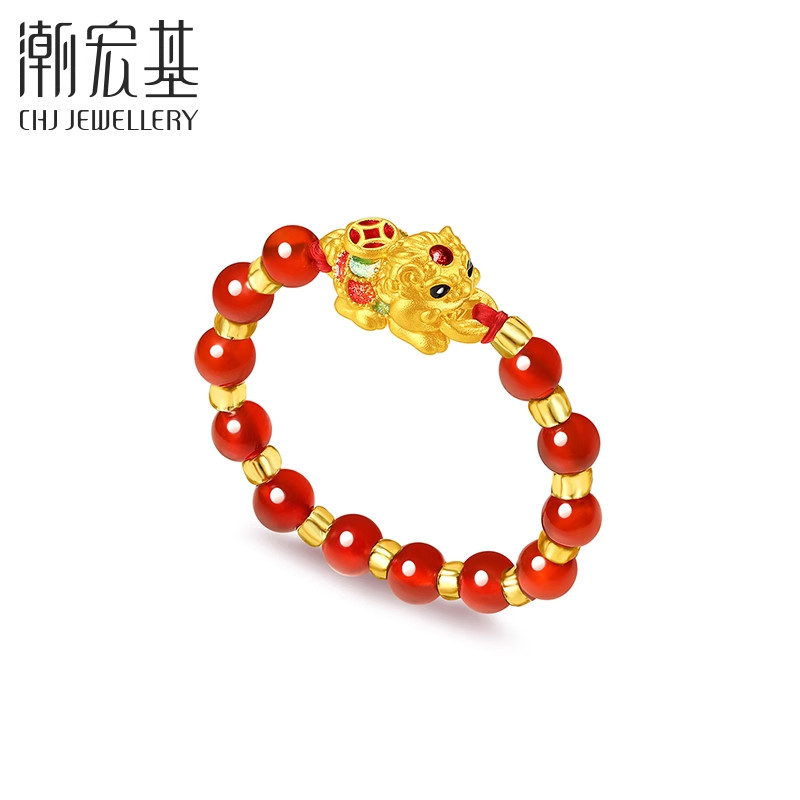 潮宏基咬钱貔貅黄金珍珠戒指足金玛瑙戒圈5D硬金珐琅吞金兽礼物