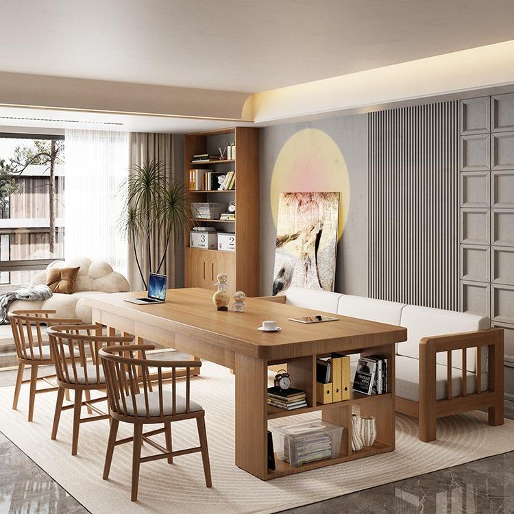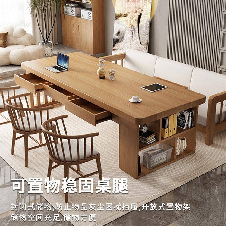 严选客厅实木大长桌实木书桌书柜一体带抽屉家用办公写字桌工作台