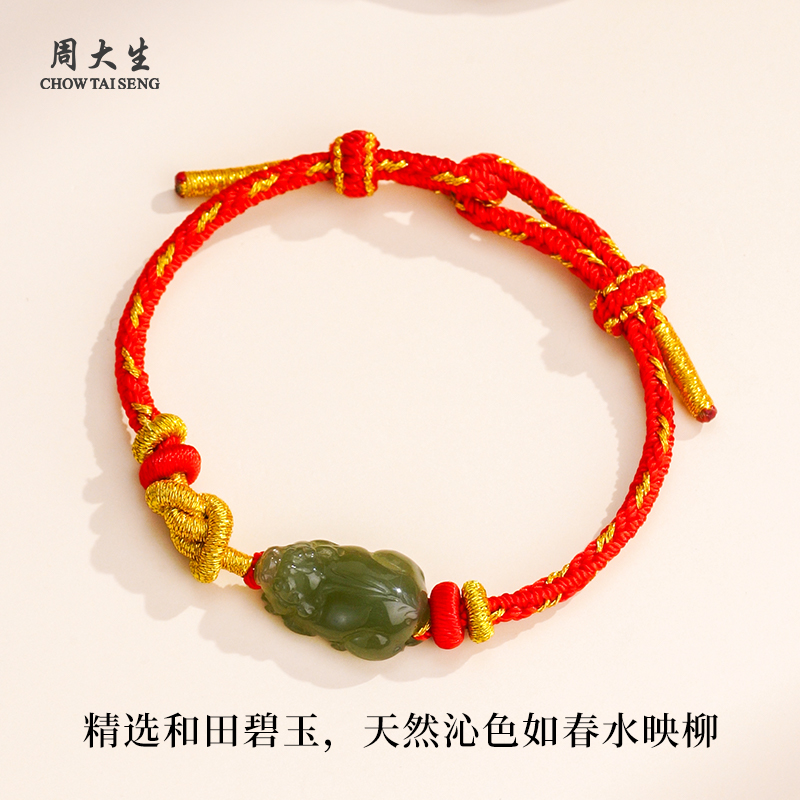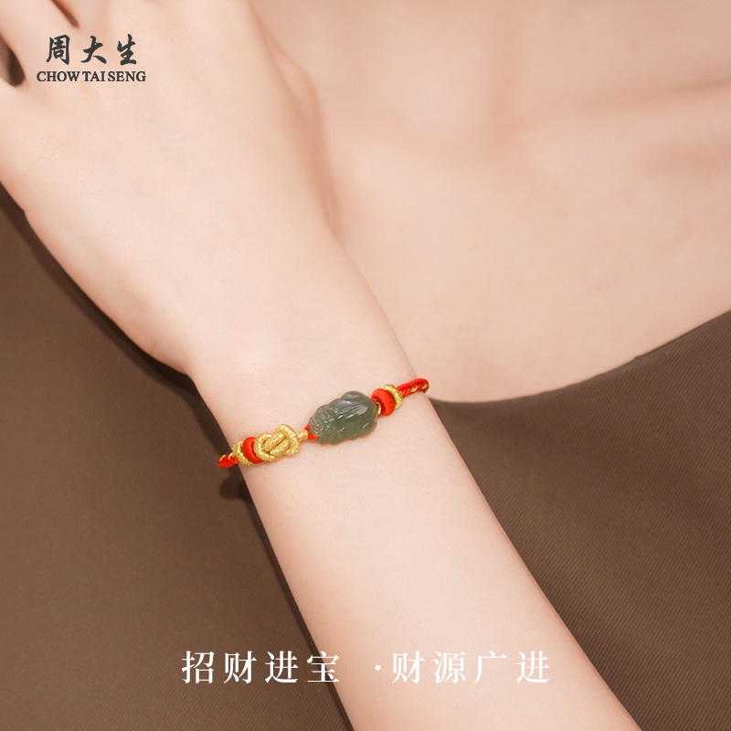 周大生官方天然和田玉貔貅手绳招财转运编绳手链正品男女生日礼物