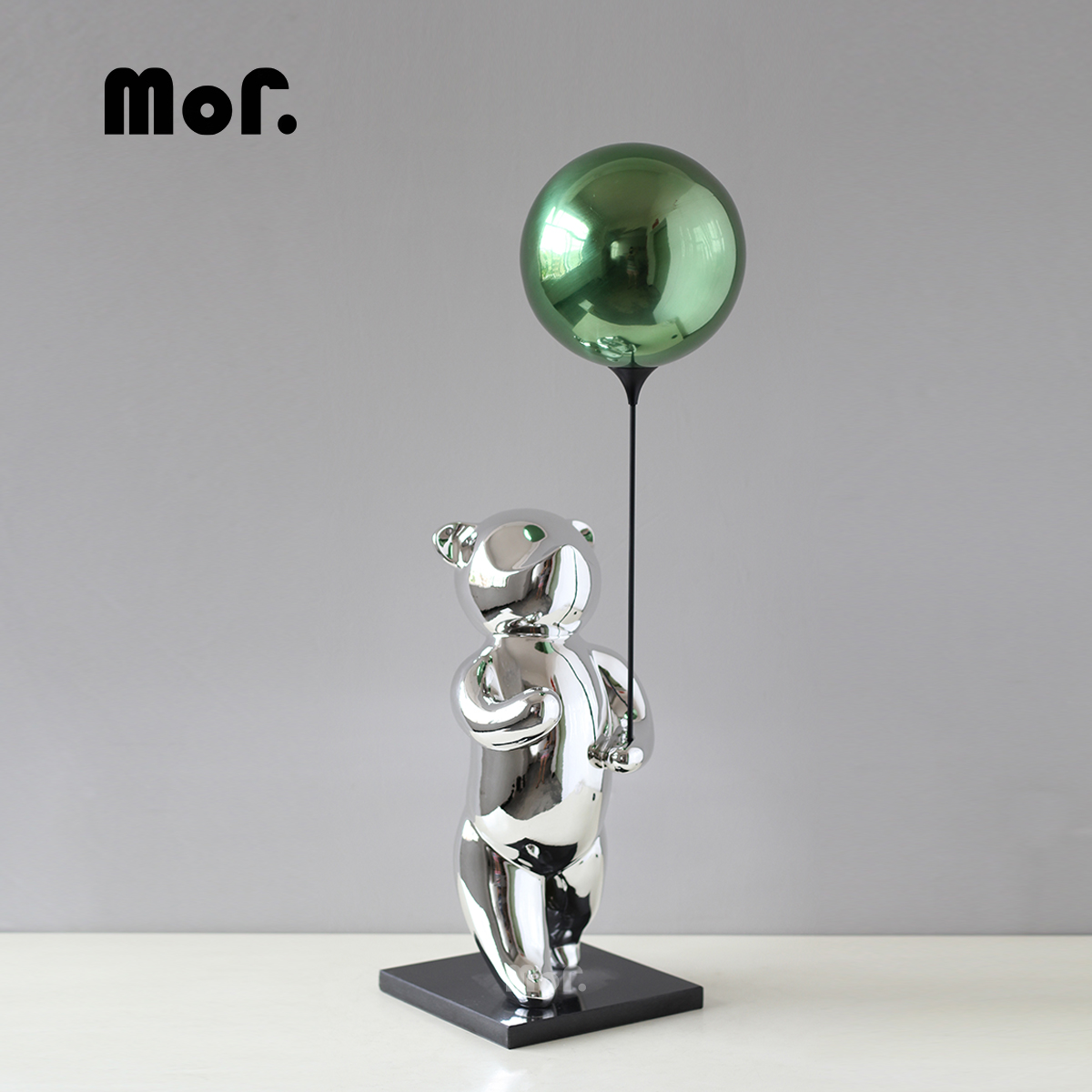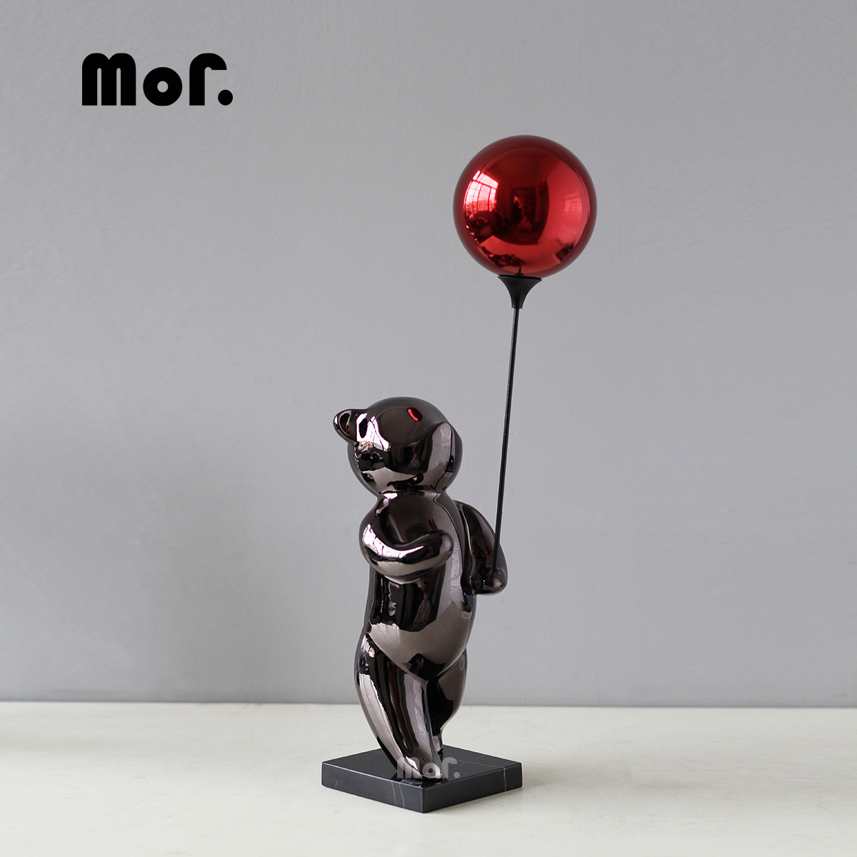 墨非 现代简约气球熊树脂金属摆件 样板间酒店儿童房民宿装饰物