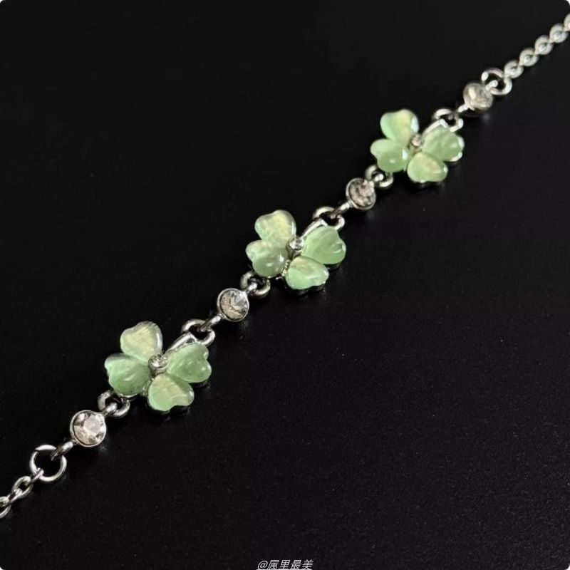 幸运草绿色四叶草猫眼石手链女高级简约小众设计感轻奢气质饰闺蜜