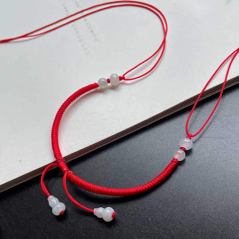 宝宝小孩红手绳半成品绑平安扣黄金朱砂玉饰编织可调节手链男女款