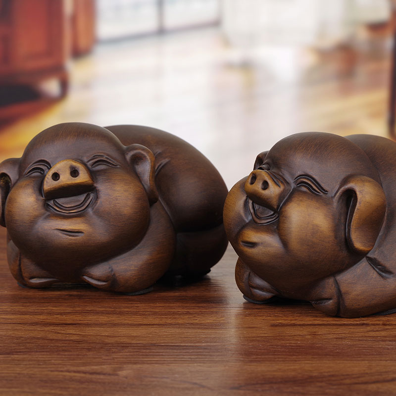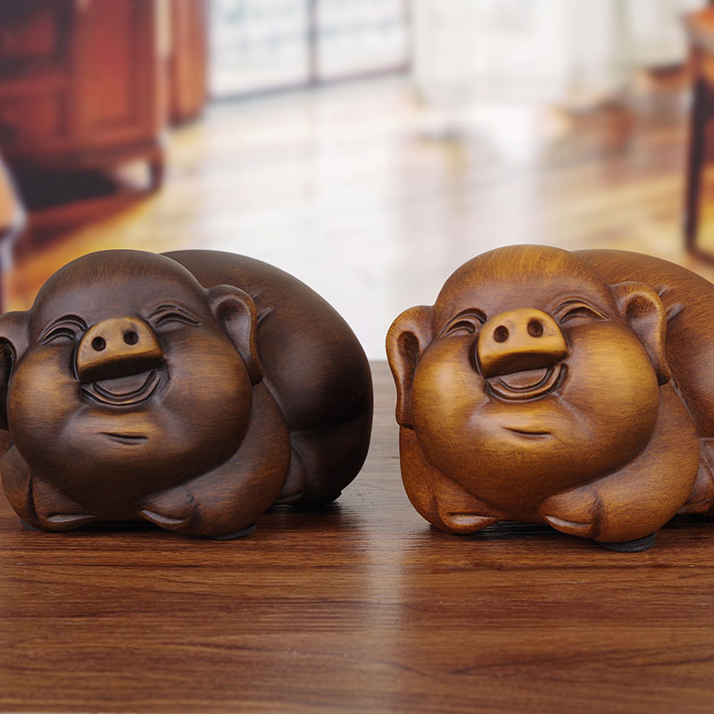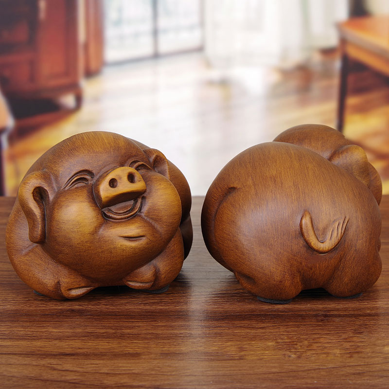 木雕招财福猪摆件中式家居玄关电视柜生肖猪工艺礼品新房创意装饰