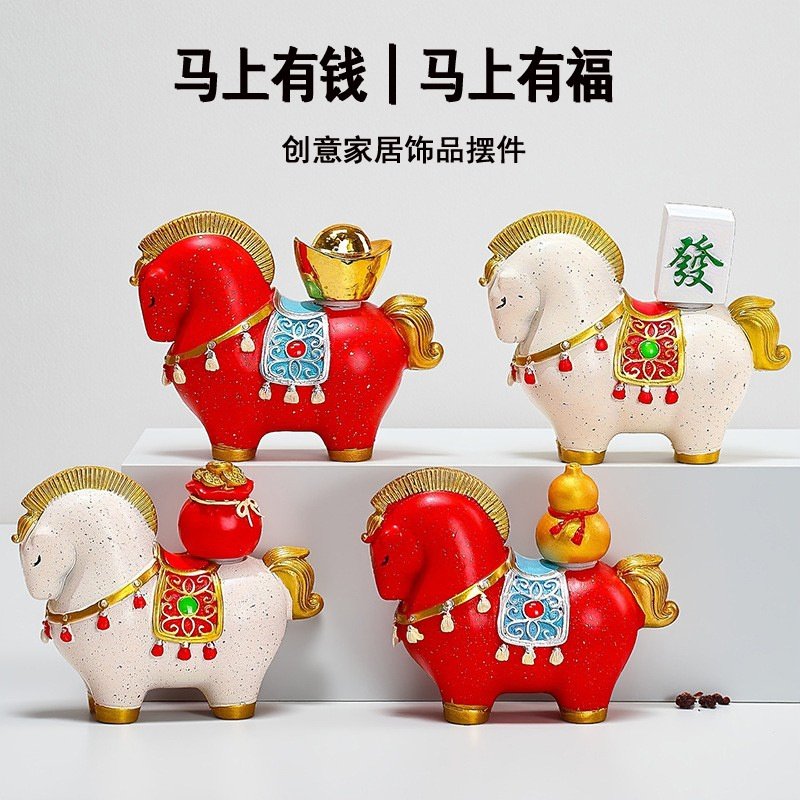 马上发财马年摆件新年礼物家居装饰品树脂公仔国潮小马年会伴手礼