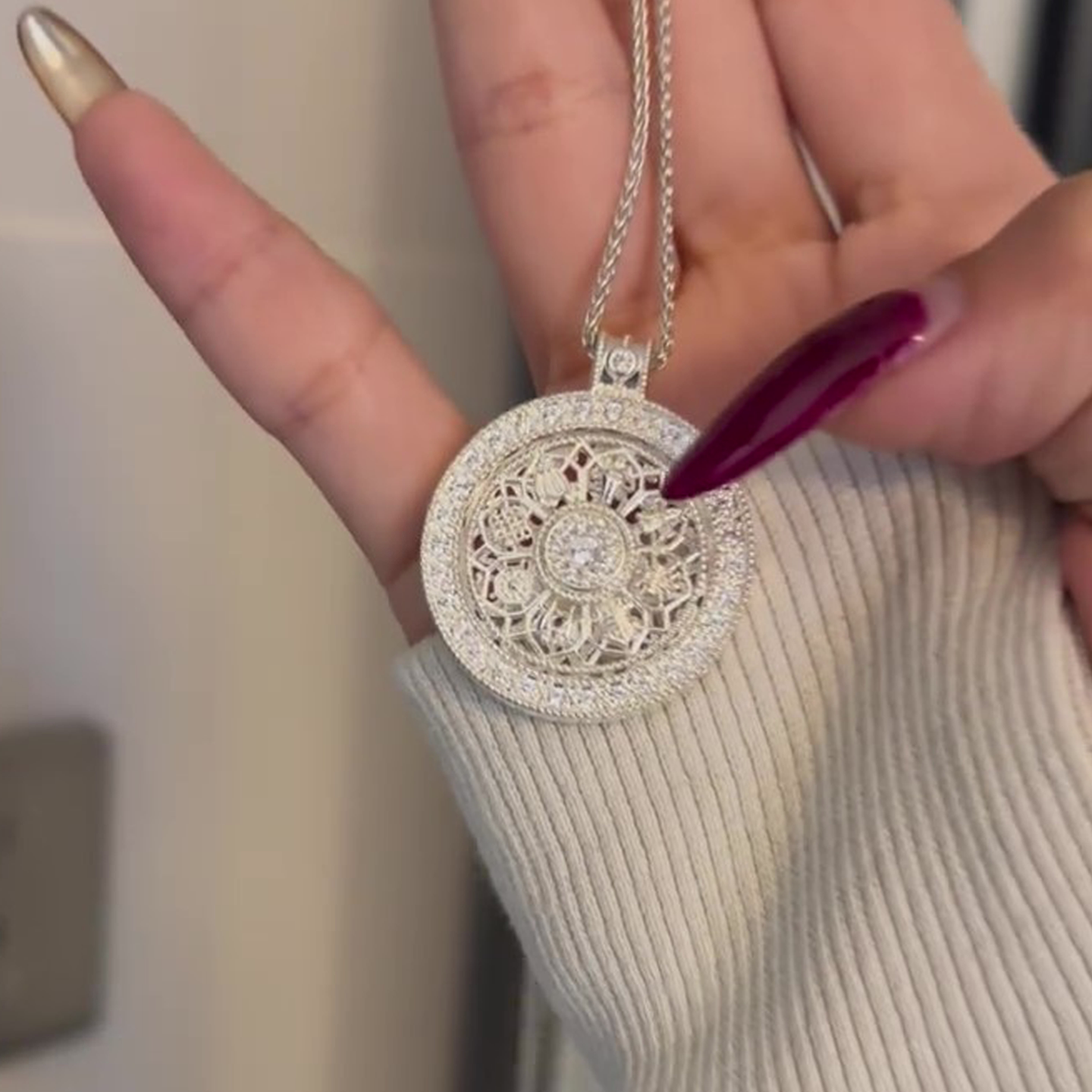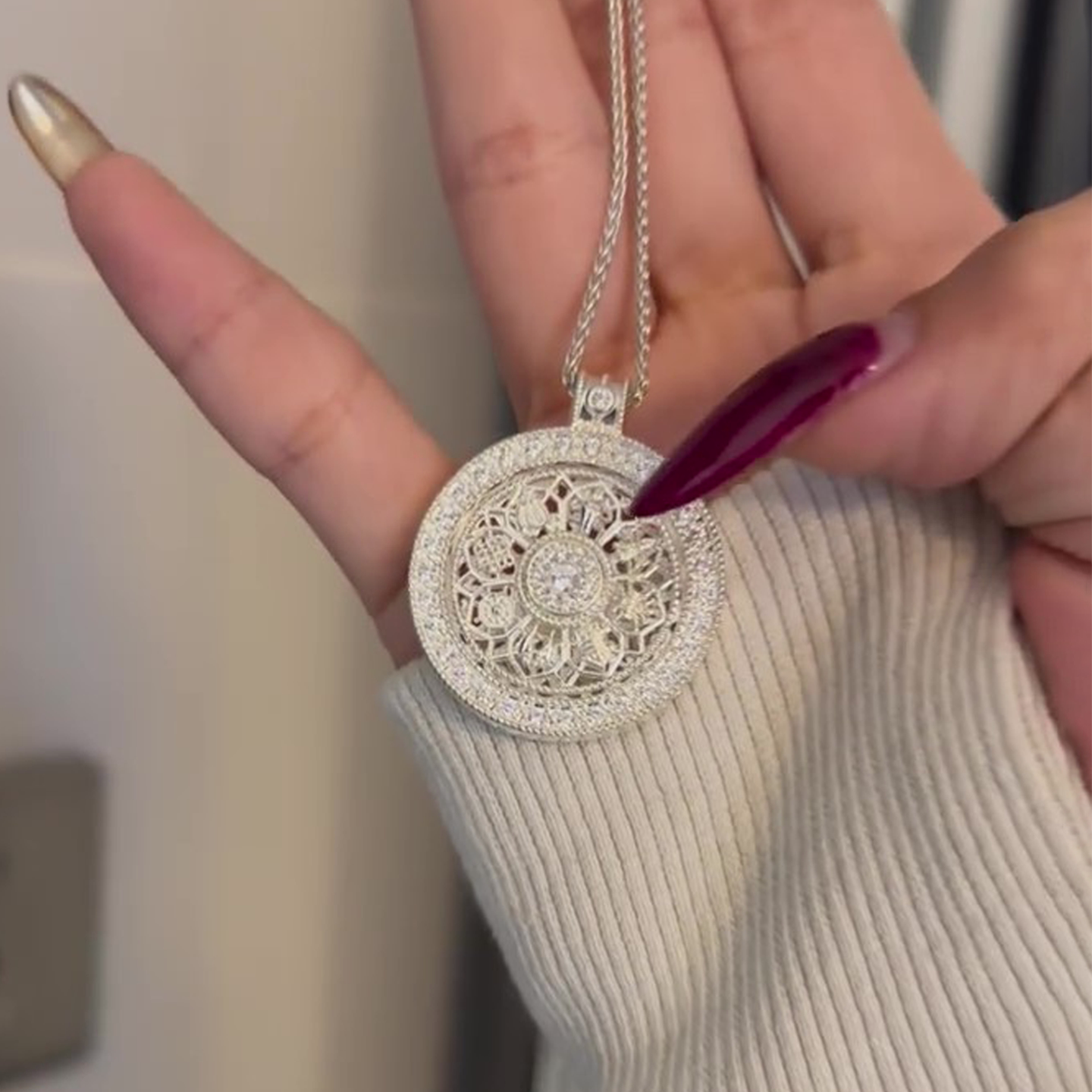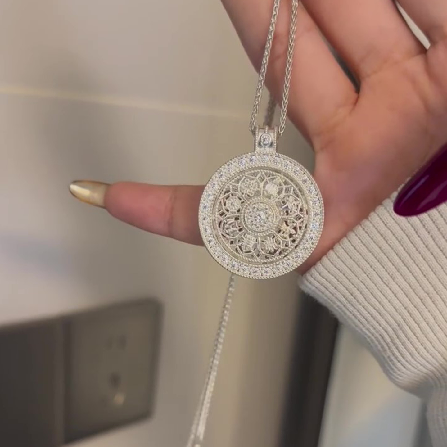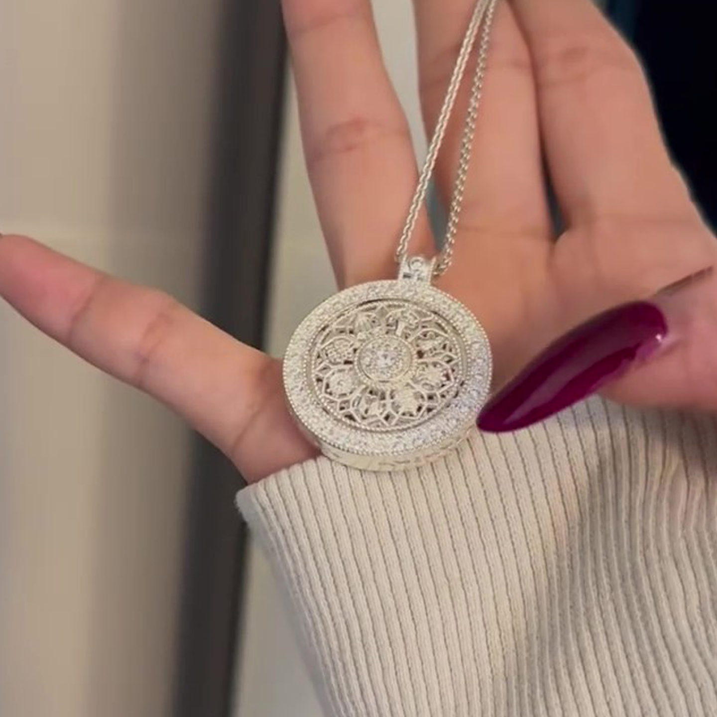 银色满钻八宝罗盘可转动项链女小众高级轻奢高档气质新中式毛衣链