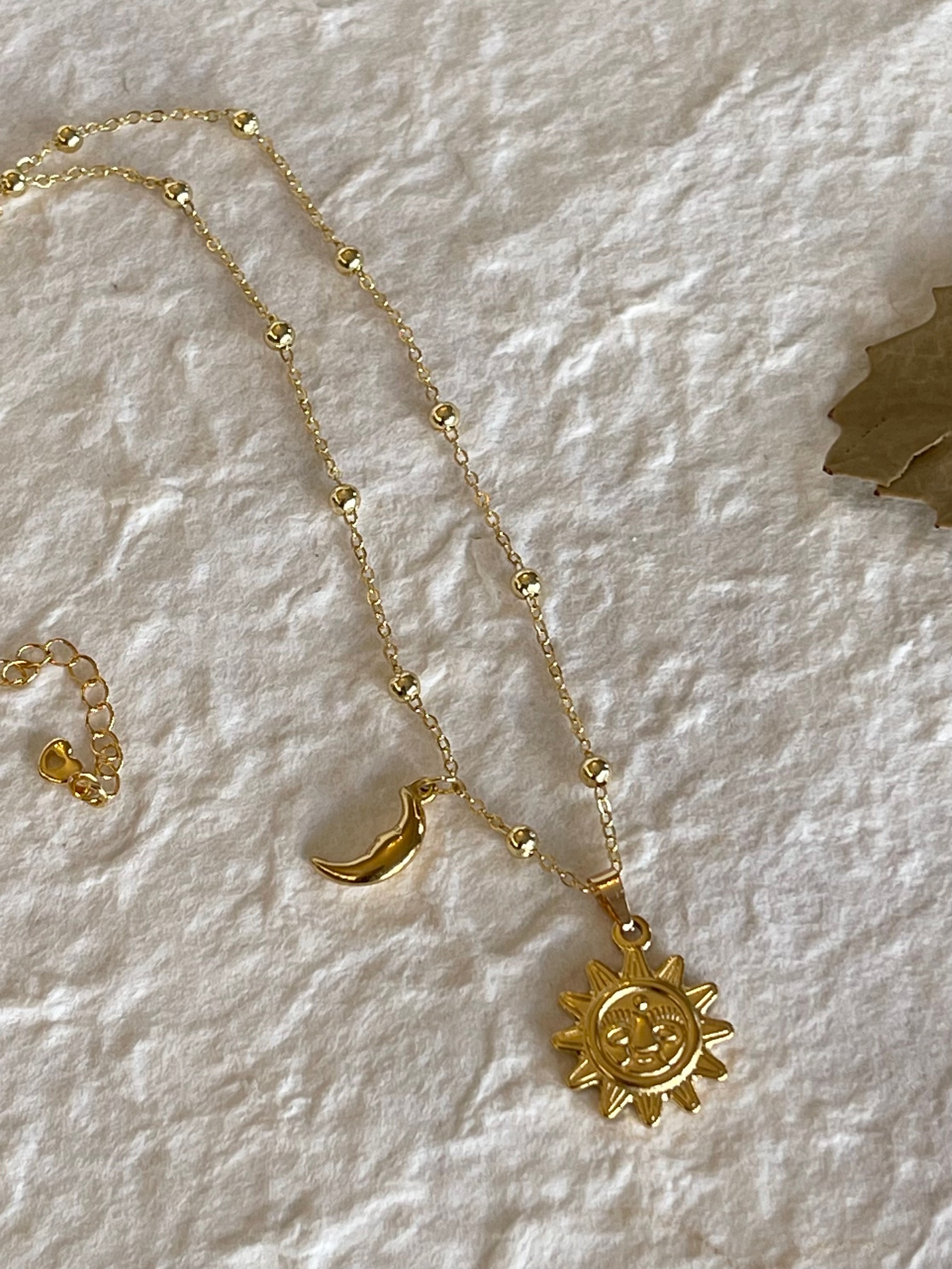 Penti&Achow欧美百搭18K镀金太阳神月亮吊坠项链