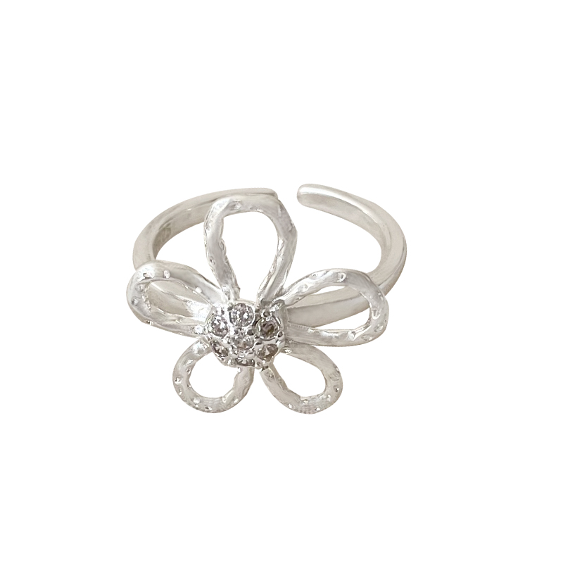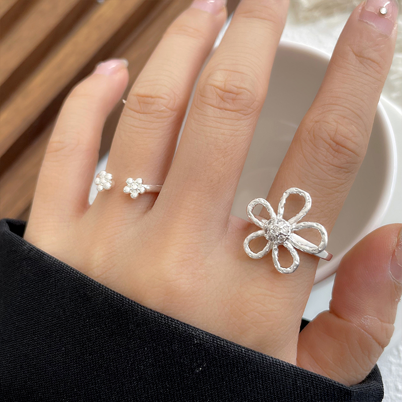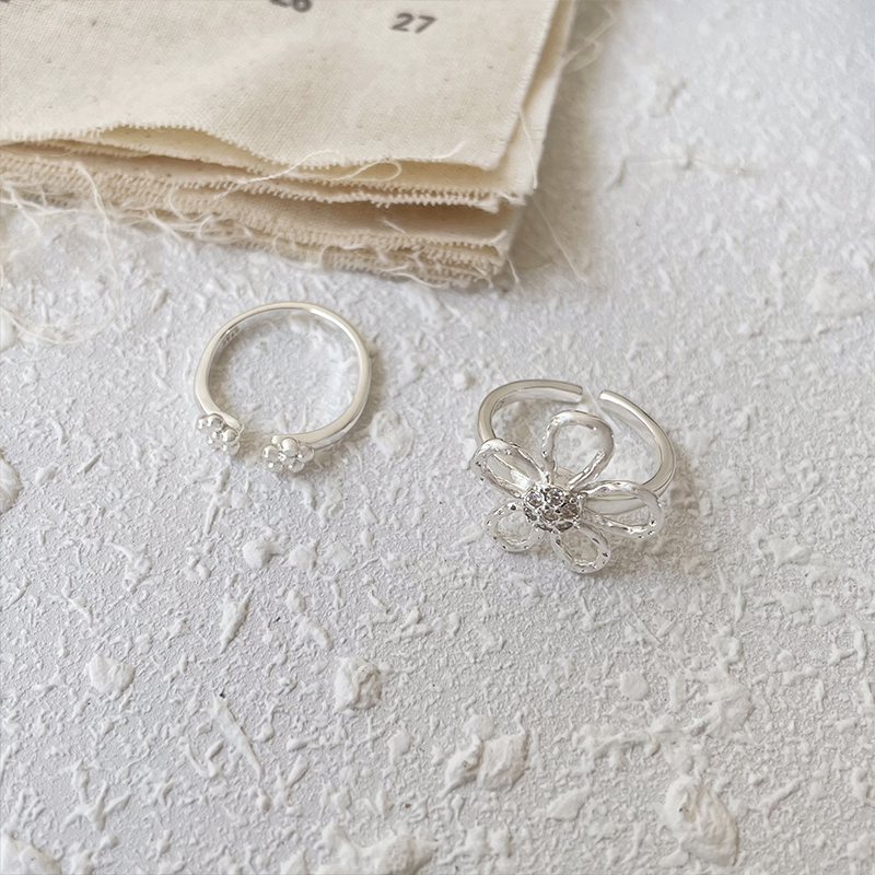 韩国东大门ins风白银饰品女花朵设计指环简约气质开口925纯银戒指