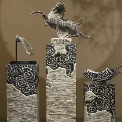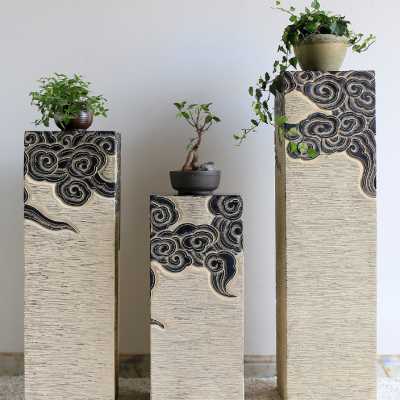 新中式禅意仿古祥云展示柱落地摆件家居饰品室内客厅玄关装饰底座