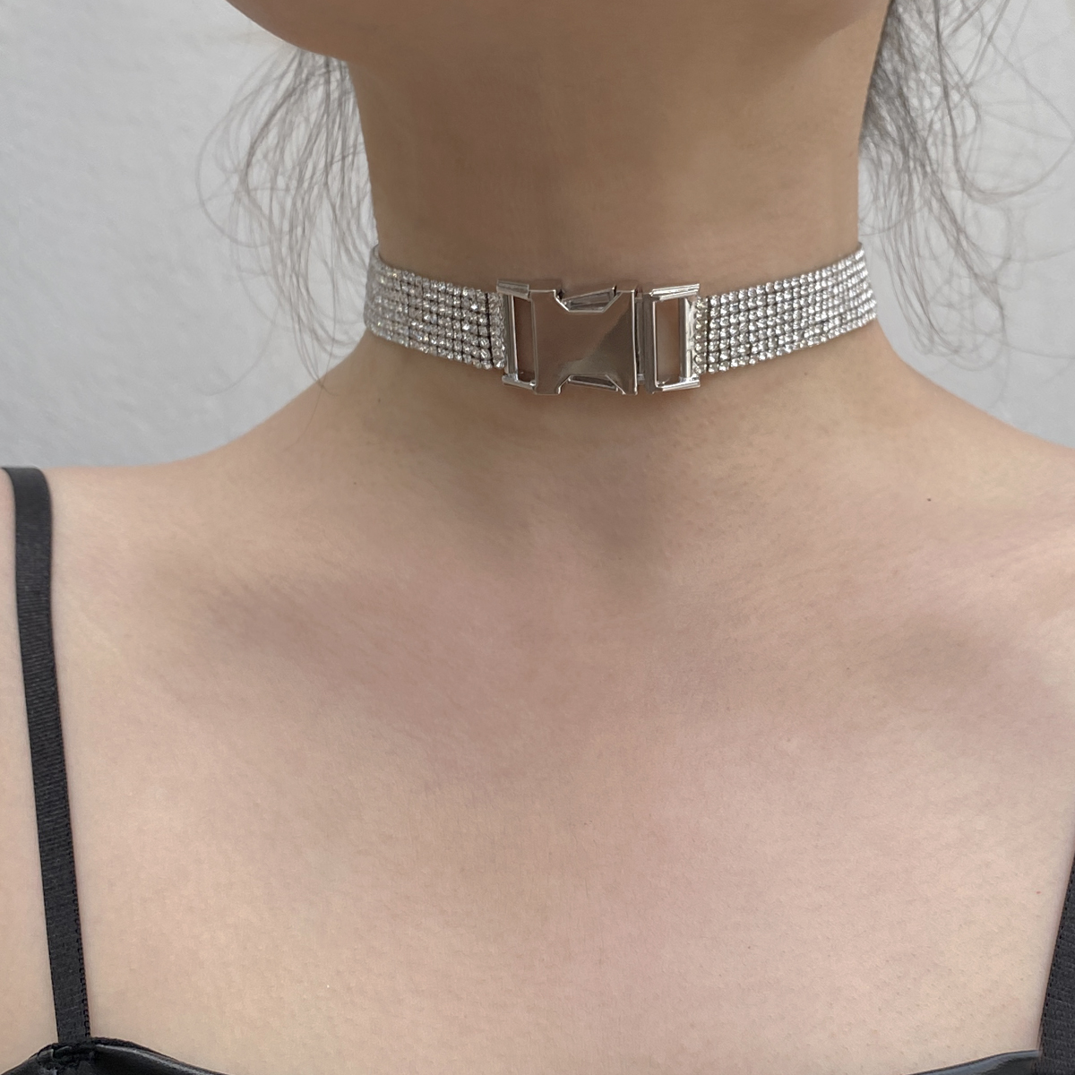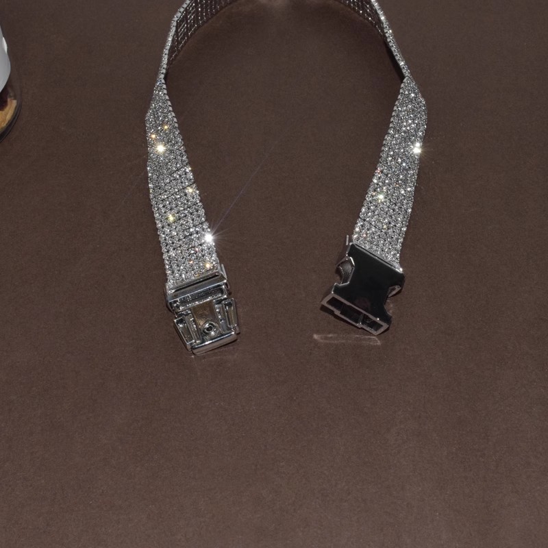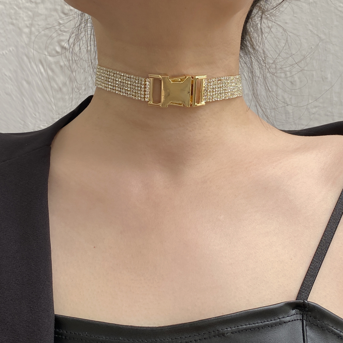 欧美金属夸张宽版表带镶钻颈链vintage小众轻奢皮带扣项链choker