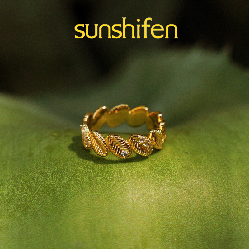 【沈月同款】sunshifen Rainforest系列金色锆石编织叶片戒指精致