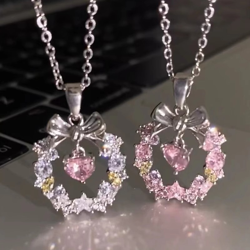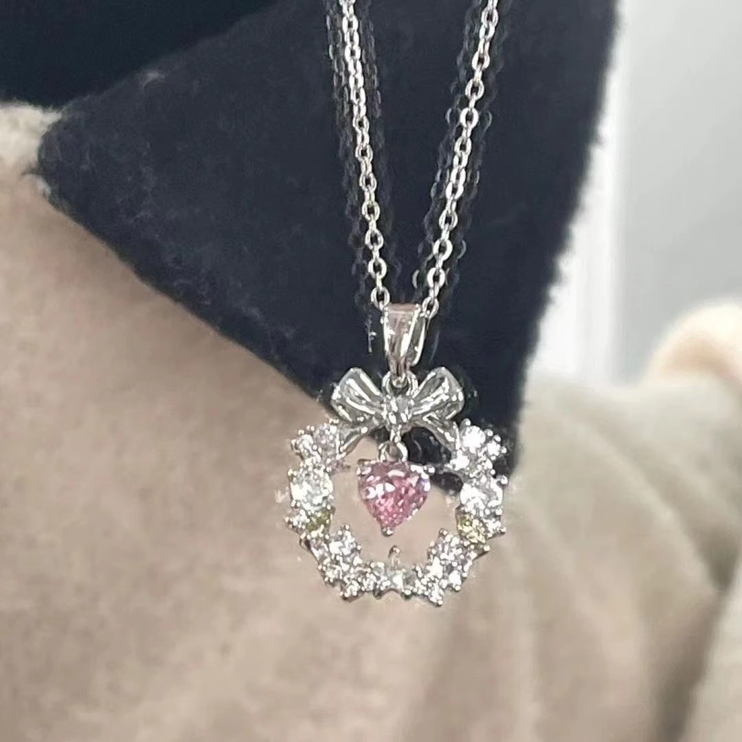 爱之花环蝴蝶结项链女锁骨链轻奢小众高级设计感甜美ins闺蜜可爱