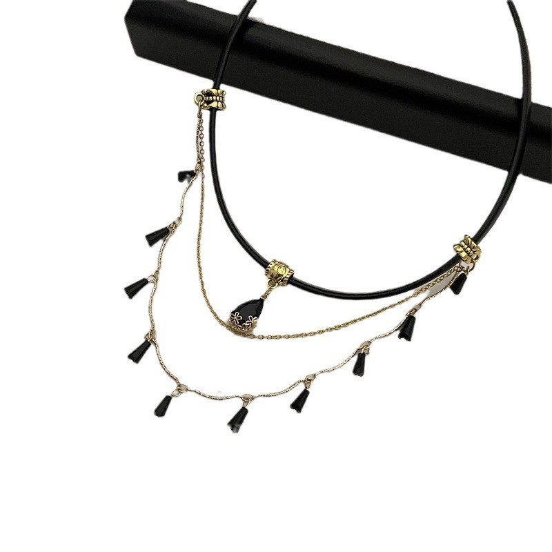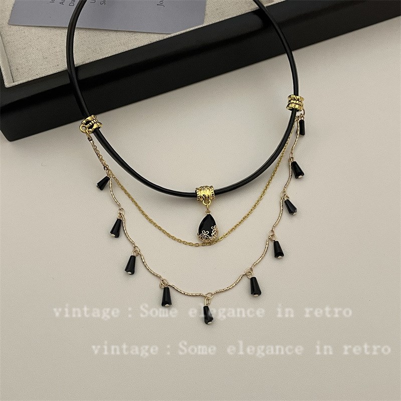 亚文化辣妹e水滴黑色锁骨链甜酷个性百搭纯欲复古气质颈链多层项